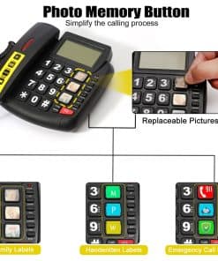 Teléfono de Escritorio Multifuncional para Ancianos VDTG, con Pantalla Grande Diseñada, Luces Indicadoras, Botones, Equipado con Teléfonos con Cable como Sintonizador, Manos Libres, Marcado de Fotos, etc. Este teléfono de escritorio VDTG es la solución perfecta para personas mayores que buscan un teléfono que sea fácil de usar y accesible. Con características como botones grandes y pantalla grande, este teléfono es ideal para aquellos con problemas de visión o audición. Además, el teléfono cuenta con funciones como marcado rápido personalizado con fotos, ajustes de volumen múltiples y protección de números de teléfono en caso de cortes de energía. La función de manos libres del teléfono permite realizar y recibir llamadas sin la necesidad de sostener el auricular, lo que hace que sea más fácil participar en conversaciones y mantenerse conectado con la familia y amigos. Con el teléfono de escritorio multifuncional VDTG, la comunicación será más sencilla y cómoda que nunca.