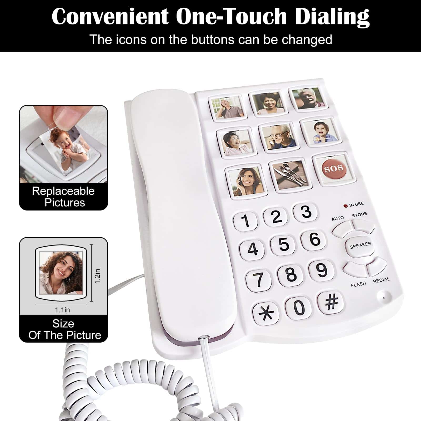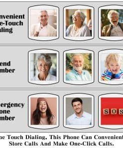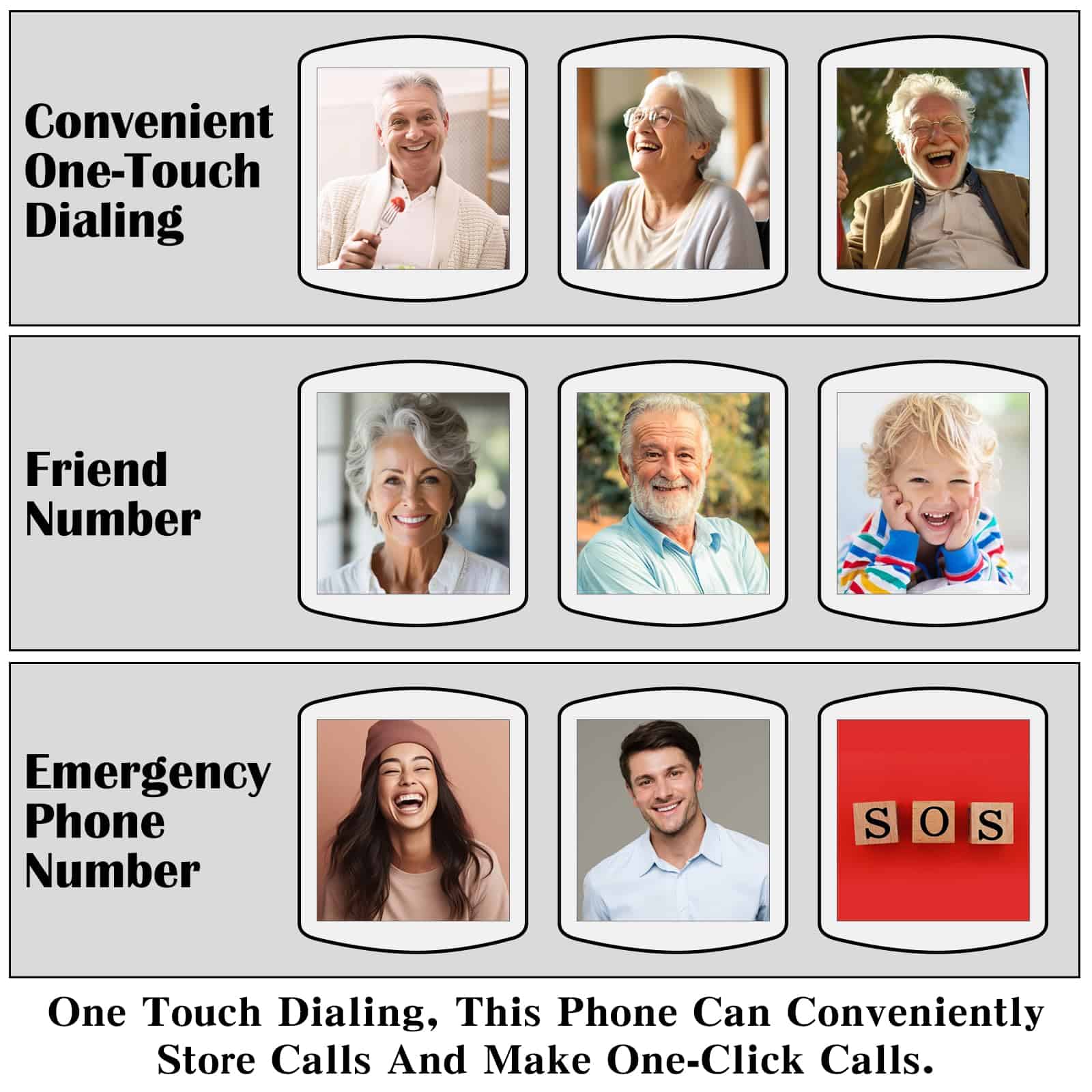 5. Función de marcación rápida de fotos: Hay ocho conjuntos de funciones de llamada a casa editables con fotos. Sus seres queridos pueden contactar fácilmente con la persona de su elección presionando un botón, y también hay otro conjunto de funciones de llamada de emergencia SOS de un solo toque (editado según el manual del usuario)