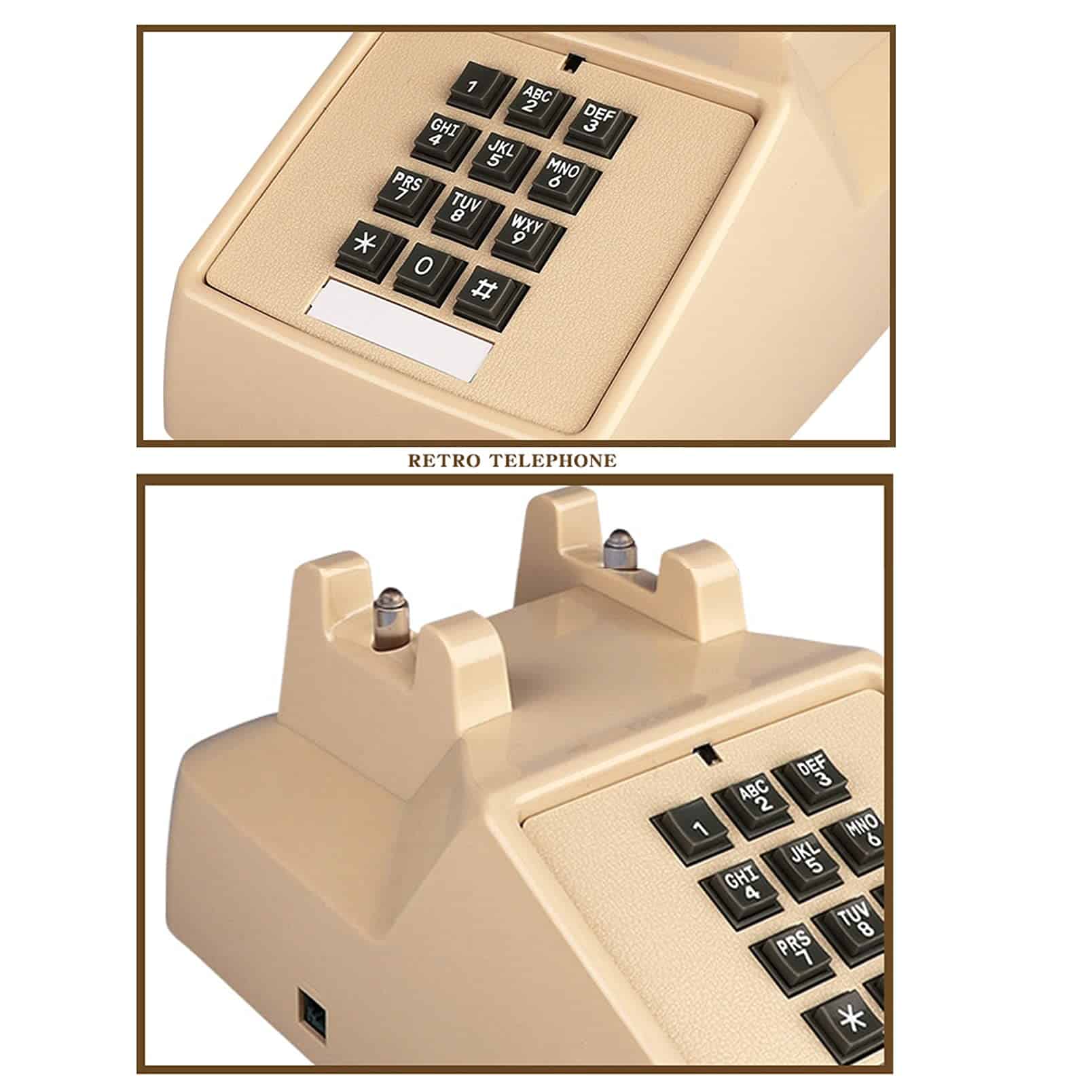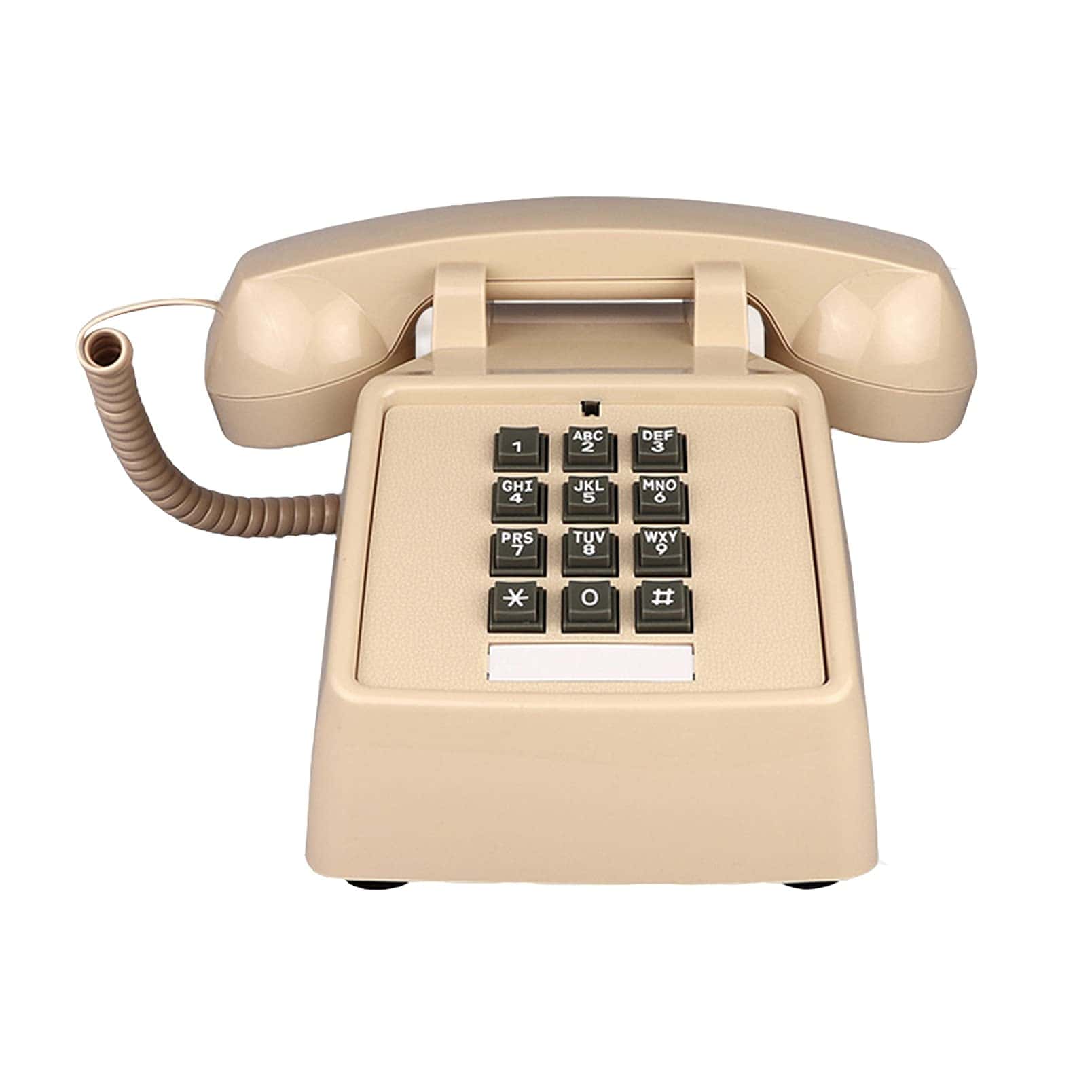 Características principales: timbre de metal mecánico: combinación de elementos modernos y técnicas de fabricación tradicionales: elegante forma antigua y diseño de timbre mecánico lo llevan de vuelta a la época romántica. Volumen del auricular ajustable: el volumen se puede ajustar a niveles altos / bajos. Volumen bajo para llamadas normales; El volumen alto es muy amigable para los ancianos. Calidad premium: mejora de la inyección secundaria, haciendo que el botón sea duradero, no fácil de desprender y desvanecer. Números grandes fáciles de leer: diseñados pensando en todos. El teléfono está fabricado con un teclado grande y fácil de leer que está elevado para que sea aún más fácil seleccionar el dígito correcto. Ideal para personas con problemas auditivos: el teléfono es compatible con audífonos y ofrece un control para un volumen de auricular aún más alto para ayudar a aquellos con problemas de audición. Soporte para nombre y número escritos a mano: también agregamos una tarjeta de número de teléfono para almacenar fácilmente el número de teléfono de líneas o cualquier otra información importante. Fácil de configurar: ¡simplemente enchufe la línea telefónica y estará listo para usar! ¡Sin necesidad de cables adicionales o enchufes! Lista de empaque: teléfono principal auricular en espiral cable de auricular cable de línea telefónica