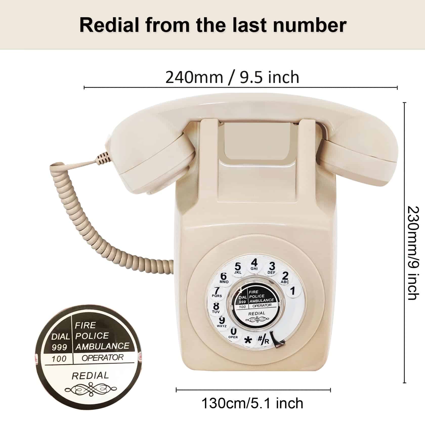 Teléfono de línea fija clásico vintage retro Marcación rotativa de moda antigua Este es un teléfono de estilo retro europeo de los años 1960. Marca exactamente como lo harías en los años 1960. El micrófono y altavoz de alta calidad en el receptor clásico garantizan una excelente calidad de voz. Este teléfono retro de alta calidad es ideal para el hogar, la oficina, el hotel, la escuela, el cine, tiendas u otros lugares. No solo es práctico sino que también puede servir como una decoración antigua. FUNCIONES DEL TELÉFONO RETRO ESTILO AÑOS 1960 1. Hacer, rechazar y contestar una llamada. 2. Función de rellamada 3. Timbre ON/OFF en la parte inferior de la base del teléfono 4. Volumen del auricular ajustable alto/bajo Especificaciones: Conector de telecomunicaciones: RJ11 Modo de marcación: Pulso y Tono Teclado de marcación: marcador de botón rotativo Incluye: 1 x Base de teléfono de marcación rotativa 1 x auricular con cable en espiral 1 x Cable de teléfono 1 x Manual de usuario