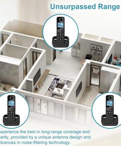 1. Tecnología DECT 6.0 con sonido claro y conexión de largo alcance; transmite señales hasta 300m al aire libre y 50m en interiores sin interferencias. 2. Bloqueo inteligente de llamadas para bloquear automáticamente las llamadas no deseadas y dar la opción de bloquear números específicos con un toque. 3. Batería de larga duración con hasta 10 horas de tiempo de conversación y 7 días de tiempo en espera, alertando visualmente la batería baja. 4. Identificador de llamadas/Espera de llamadas para informarte sobre llamadas entrantes con detalles del llamante. 5. Directorio telefónico y registros de llamadas para un acceso rápido a contactos.