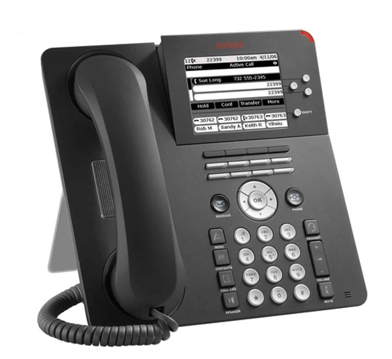 A través de su navegador web integrado e interfaz de aplicación, el 9650 soporta aplicaciones mejoradas como directorios corporativos LDAP e integración con calendarios de Microsoft Outlook. LEDs integrados en botones como silencio, mensaje y auricular proporcionan una clara indicación al usuario. Menús contextuales fáciles de usar con indicaciones en pantalla. Altavoz dúplex completo retroiluminado y auricular de audio de banda ancha. Cluster de navegación de 4 vías, 4 teclas blandas de pantalla. Las características fijas incluyen mensaje, teléfono, contactos, menú, registro de llamadas, altavoz, silencio, auricular y control de volumen. Firmware H.323 (también se pueden cargar con firmware SIP). Compatibilidad: versión H.323 compatible con Avaya Communication Manager R3.0 o posterior. Versión SIP compatible con Avaya Communication R4.0 o posterior. Alimentado a través de PoE 802.3af o fuente de alimentación local 1151 (ver accesorio a continuación).