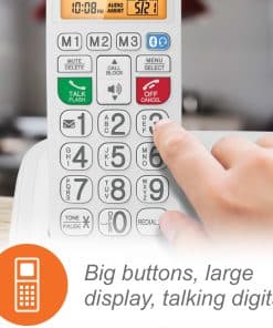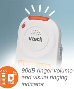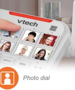 Diseñado para personas mayores o con discapacidad auditiva, el sistema de teléfono senior amplificado VTech SN5147 con timbre visual extra fuerte de 90dB, botones grandes y pantalla grande viene con características que hacen que escuchar y marcar llamadas sea más fácil que nunca. Con botones grandes, pantallas grandes y un altavoz full-dúplex en cada dispositivo, este sistema de teléfono amigable para personas mayores elimina la incertidumbre al marcar llamadas. Adjunta una foto a cada uno de los cuatro botones de marcación rápida con foto en el auricular de marcación y llama a los números de teléfono marcados con frecuencia con un solo toque para acceder rápidamente a amigos y familiares. Aumenta el volumen del sonido entrante en este sistema de teléfono senior amplificado VTech SN5147 con timbre visual extra fuerte de 90dB, botones grandes y pantalla grande hasta 50 decibeles, haciendo que las conversaciones sean más fáciles de escuchar y entender. Puedes decir adiós a las llamadas no deseadas con este teléfono amplificado gracias al bloqueador de llamadas inteligente. Las llamadas automáticas en tu línea fija son bloqueadas automáticamente para que nunca suenen aunque sea la primera vez. También puedes agregar de manera permanente a la lista negra hasta 1,000 números con un solo toque.