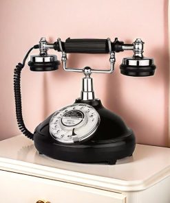 Teléfono de Línea Negro Clásico Vintage Antiguo para Decoración en la Casa, Escuela, Películas