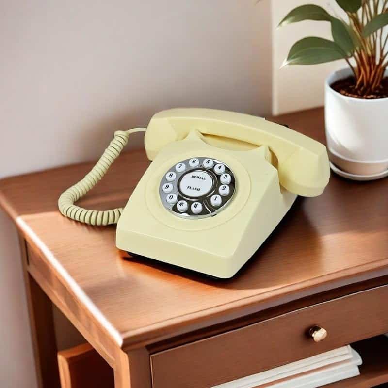 Este es un teléfono europeo de estilo retro de la década de 1980. Marca exactamente como lo harías en 1980. El micrófono y altavoz de alta calidad en el clásico auricular receptor aseguran una excelente calidad de voz. Este teléfono retro de alta calidad es ideal para el hogar, la oficina, un hotel u otros lugares. No solo es práctico sino que también puede servir como una decoración antigua.