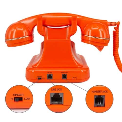 3. El control de volumen, el conector de línea y el conector de teléfono están diseñados en la parte posterior para una fácil ocultación, asegurando que no afecten la apariencia del teléfono vintage.