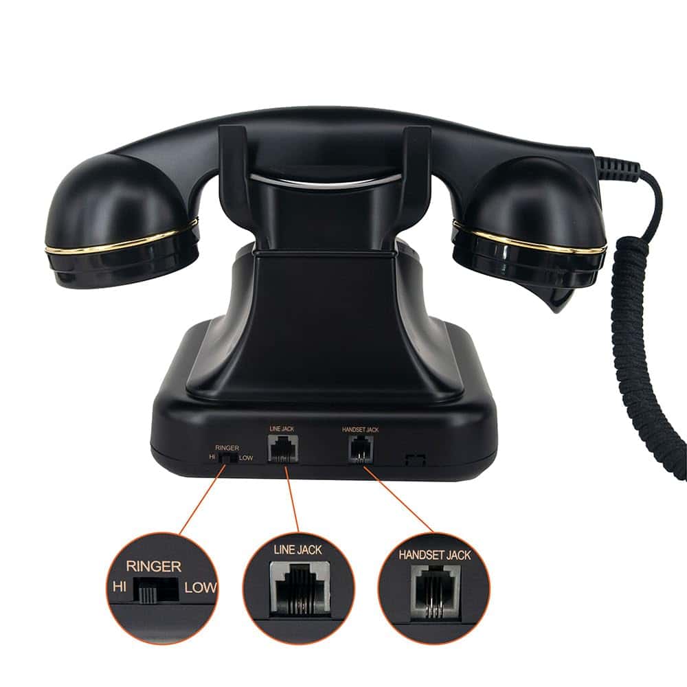 3. El control de volumen, el conector de línea y el conector de teléfono están diseñados en la parte trasera para una fácil ocultación, asegurando que no afecten la apariencia del teléfono vintage.