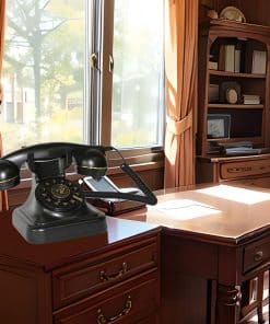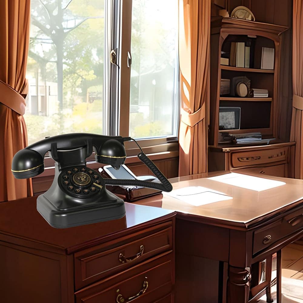 2. Los teléfonos vintage negros son adecuados para superficies de muebles de cualquier color y lucen hermosos cuando se colocan allí.