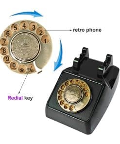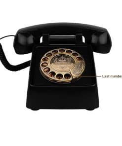 Teléfono con diseño de dial rotativo vintage – un clásico atemporal para hogares modernos. Agrega un toque de nostalgia y elegancia a tu hogar u oficina con nuestro Teléfono con diseño de dial rotativo vintage. Este teléfono fijo retro bellamente diseñado combina el encanto de antaño con la funcionalidad de la tecnología moderna, convirtiéndolo en una adición perfecta a cualquier espacio. Ya sea que seas coleccionista, fanático de la decoración vintage o simplemente estés buscando una pieza única que genere conversación, este teléfono te impresionará.
