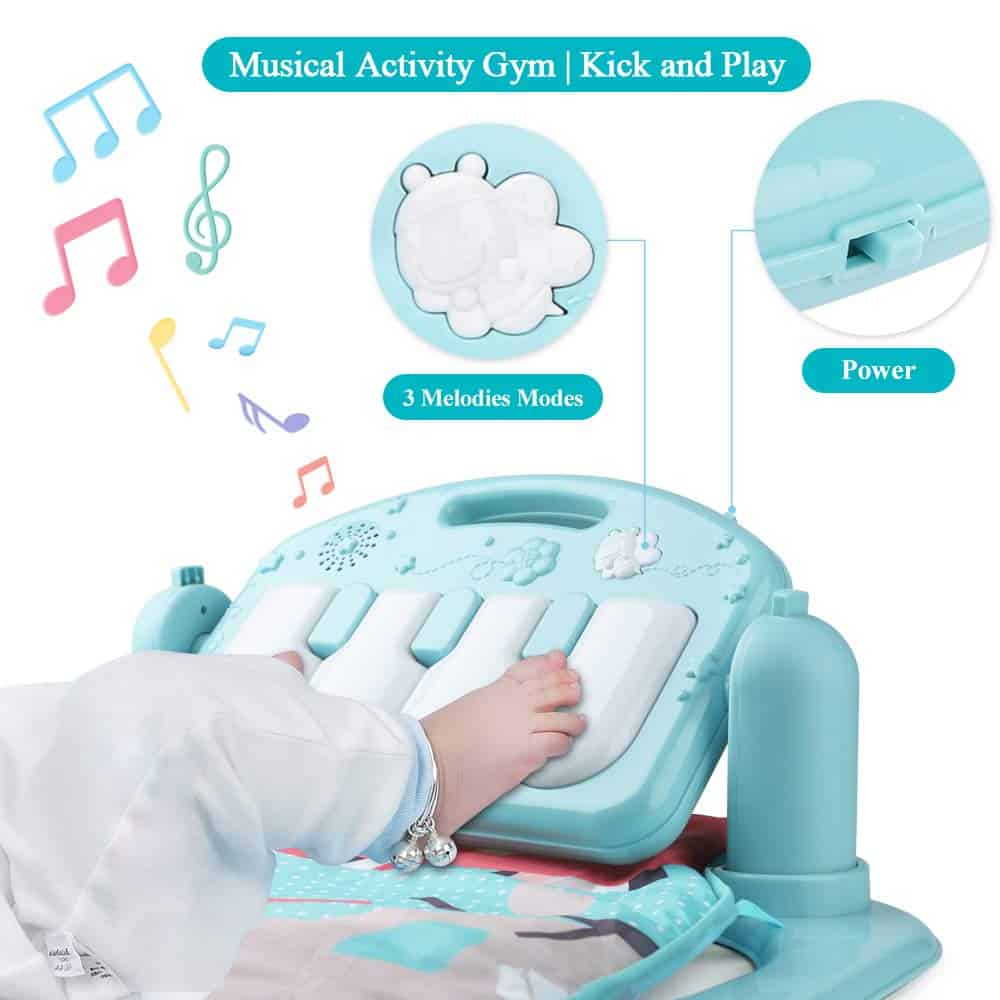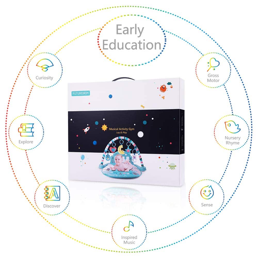 FuturoMore Baby Activity Gym Play Mat: un perfecto juguete que crece con tu bebé para su desarrollo temprano. Crea oportunidades para que tu bebé desarrolle apreciación musical, coordinación mano-ojo y cognitiva. Este tapete de juego con actividad y piano electrónicos entretendrá a tu hijo desde los primeros días, pasando por la infancia y hasta la etapa de niño pequeño. El tapete de juego con juguetes de actividad es lavable a máquina y fácil de mantener limpio. ¡Solo requiere 3 pilas AA (no incluidas) para que tu bebé descubra y quede asombrado con la cantidad de movimientos, luces y sonidos!