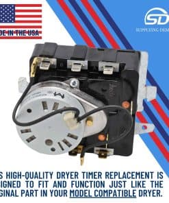 Este Temporizador de Secadora de Supplying Demand es un reemplazo confiable para tu antiguo temporizador de secadora Con números de pieza WE4M366, PS9491768, AP5805478 y TMD14M04, y está hecho en EE. UU. Este reemplazo de temporizador de secadora de alta calidad está diseñado para adaptarse y funcionar como la pieza original en tu secadora compatible. Fabricado con precisión en EE. UU., este duradero temporizador de secadora ayuda a garantizar tiempos de ciclo precisos y consistentes para tu colada. Reemplace su temporizador de secadora defectuoso con la tranquilidad de saber que este producto hecho en EE. UU. cumple o supera las especificaciones de las piezas originales. Actualice al Temporizador de Secadora EE. UU. de Supplying Demand y disfrute de un rendimiento duradero y tranquilidad. Hecho en América