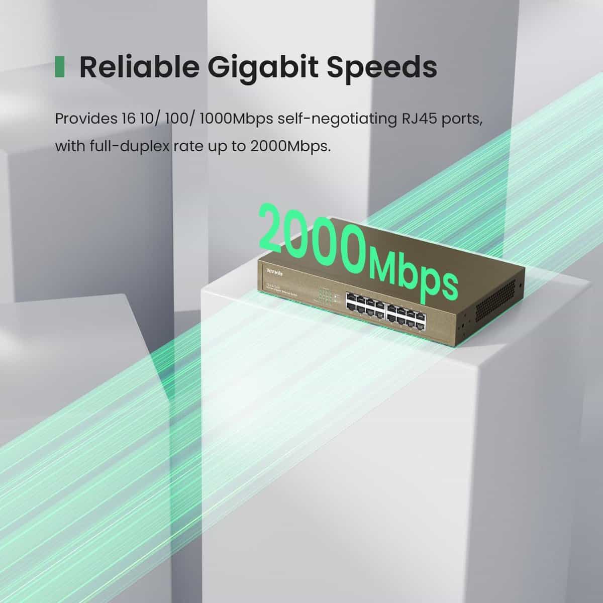 Tenda TEG1016D Switch Ethernet Unmanaged de 16 puertos Gigabit 16-Port 10/100/1000 Mbps.
