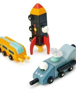 Despega con estos futuristas vehículos espaciales de Tender Leaf Toys. Características: Cada vehículo está compuesto por 3 partes que se pueden desmontar y volver a armar según lo demande tu imaginación. Este set también es compatible con otros sets de construcción de robots y cohetes, lo que hace que el tiempo de juego sea aún más divertido. Edad recomendada: 3 años en adelante