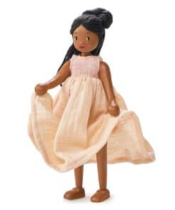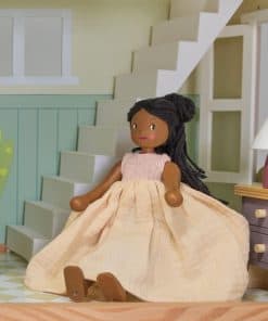 Hechas a mano con amor con madera de caucho ecológica, estos compañeros adorables – Ferne y Lola (se venden por separado) – se mantienen erguidos y pueden mover sus brazos y piernas de muchas formas divertidas. Con sus extremidades flexibles, siempre están listas para unirse a la diversión del juego. Ya sea involucradas en aventuras imaginativas o viviendo cómodamente en la Mansión Mulberry, estas dos muñecas de madera, vestidas con sus lindos vestidos de muselina y de punto, encantan con su atractivo atemporal y su encanto sostenible.