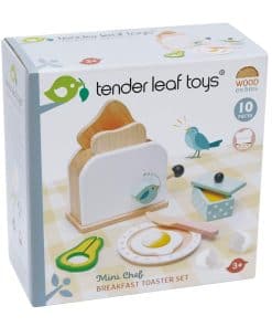 Este set de Tostadora de Desayuno de madera de alta calidad es un juguete cautivador que mantendrá a los niños entretenidos por horas. Con su construcción duradera, la tostadora es una adición atemporal a cualquier sala de juegos, diseñada para ser apreciada por generaciones. Mejora la colección de cocina de juguete de tu hijo con este adorable set de desayuno de Tender Leaf Toys.