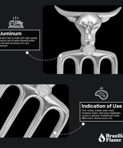 Este tenedor de toro está hecho con aluminio de alta calidad y tiene un acabado pulido a mano. Es perfecto para desmenuzar su carne sin desorden o cualquier tenedor. Agarre fácilmente y desmenuce cerdo, pollo, res, con garras ultra afiladas. Un excelente regalo para un amigo especial, miembro de la familia, compañero de trabajo. Indicación de uso: cerdo, pavo, carne de res, carne, carnes sin hueso, sostenga verduras grandes, cocina en general. Fácil y divertido: la fuerte y duradera composición y el material de las garras sólidas son diferentes de otros productos en el mercado que están hechos de acero delgado y estampado. Esto le da a las garras del oso un excelente agarre y apariencia estética. Se puede utilizar para levantar, manejar, desmenuzar, tirar y tallar cualquier carne. Excelente para manejar pavo también. Nuestro diseño único le brinda un agarre perfecto para administrar de manera segura las cuchillas de desmenuzado súper afiladas. Diseño único: ya sea un chef de barbacoa profesional o simplemente alguien a quien le gusta jugar en la cocina, un tenedor de oso adecuado es esencial para su barbacoa. Con el diseño de mango único, se adapta perfectamente a sus manos. Brazilian Flame le ofrece las mejores y únicas herramientas que no solo son absolutamente increíbles para desmenuzar, levantar, agarrar, sostener carne, sino que también son atractivas y duraderas. Fácil de limpiar: nunca se preocupe por que sus herramientas de desmenuzado se derritan cerca de la parrilla o en el lavavajillas. No importa cuán duro use sus garras de carne, la limpieza es fácil. ¡No recoger trozos de carne de lugares difíciles de alcanzar. Súper simple y listo para volver a usar!