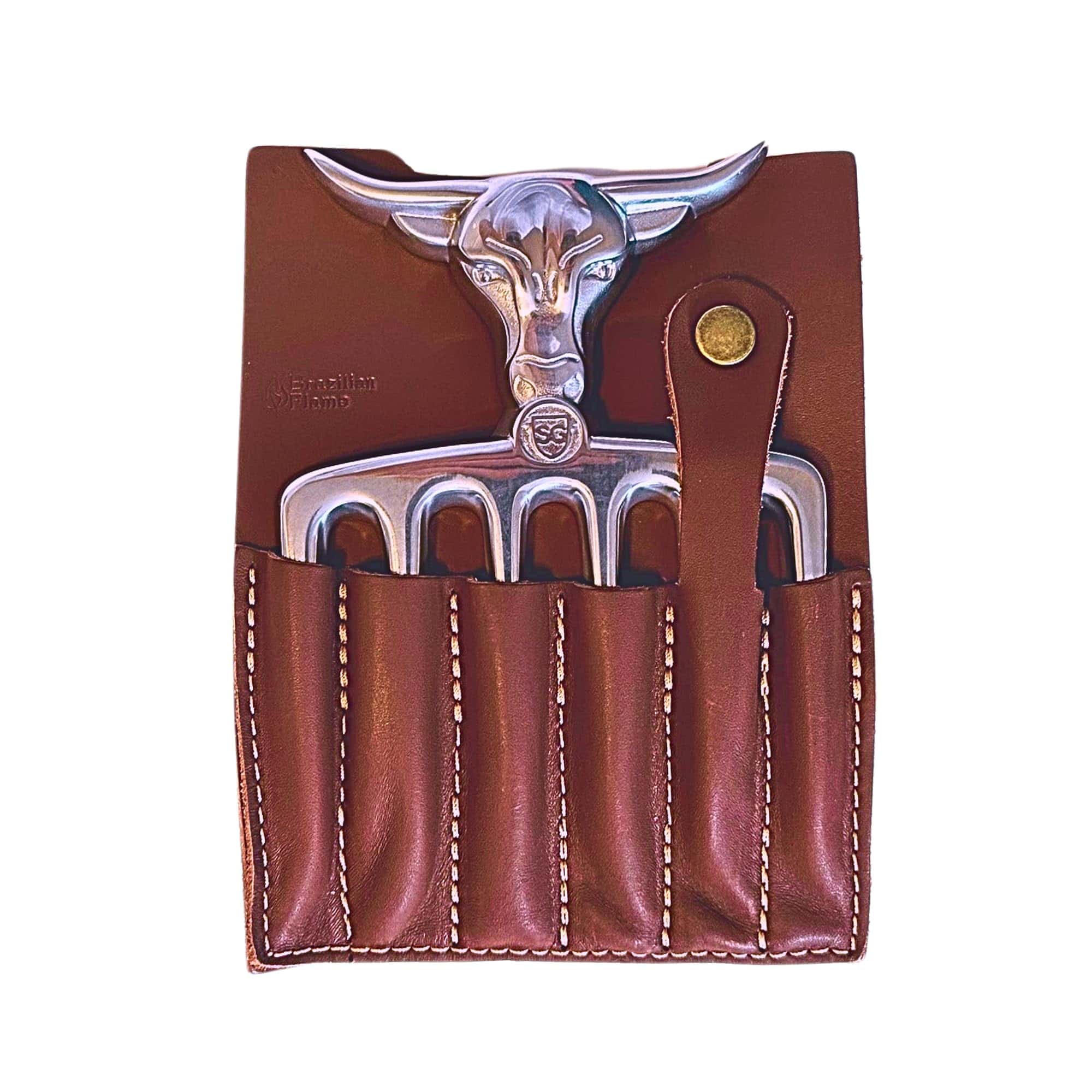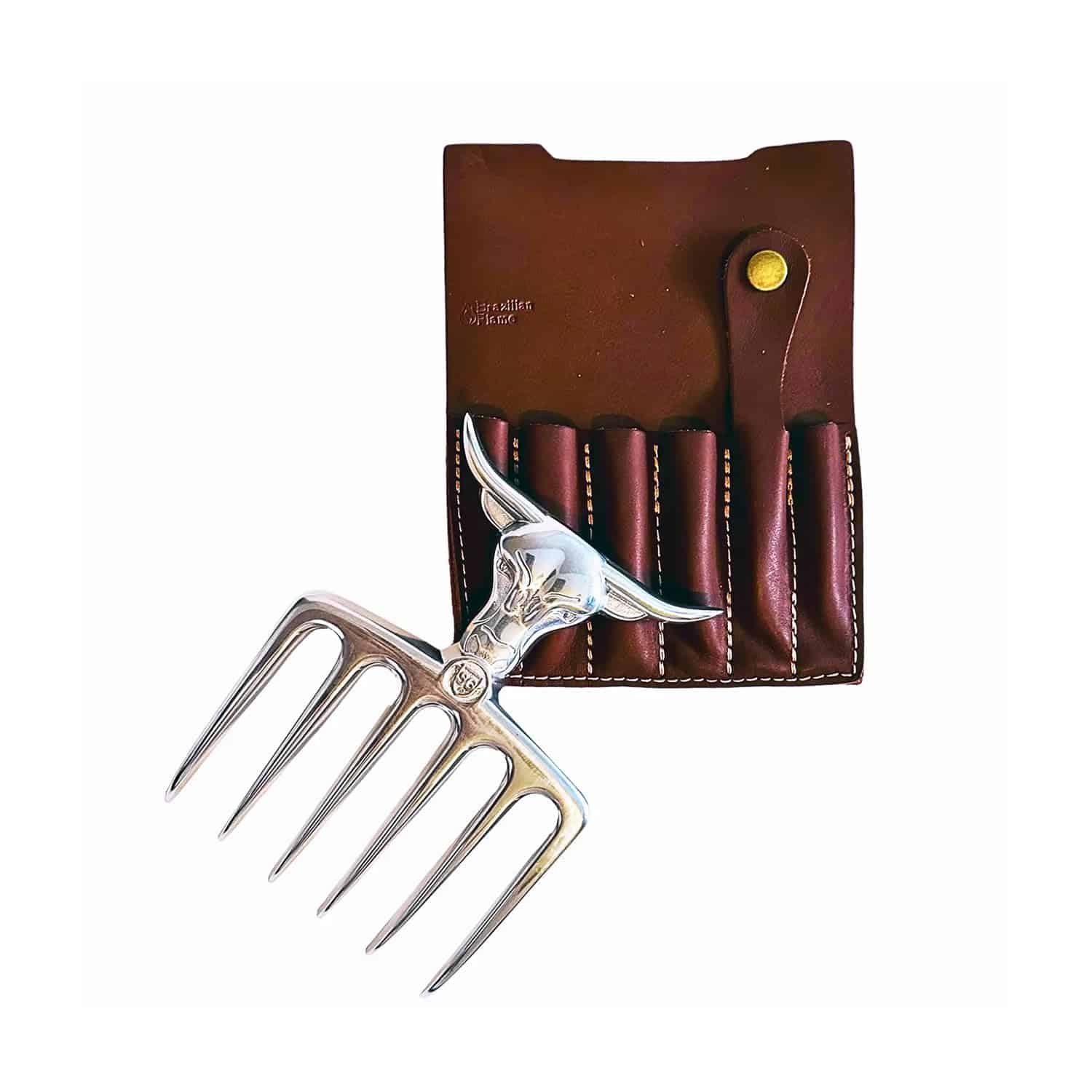 Tenedor de Aluminio de 6 Dientes con Funda de Cuero –