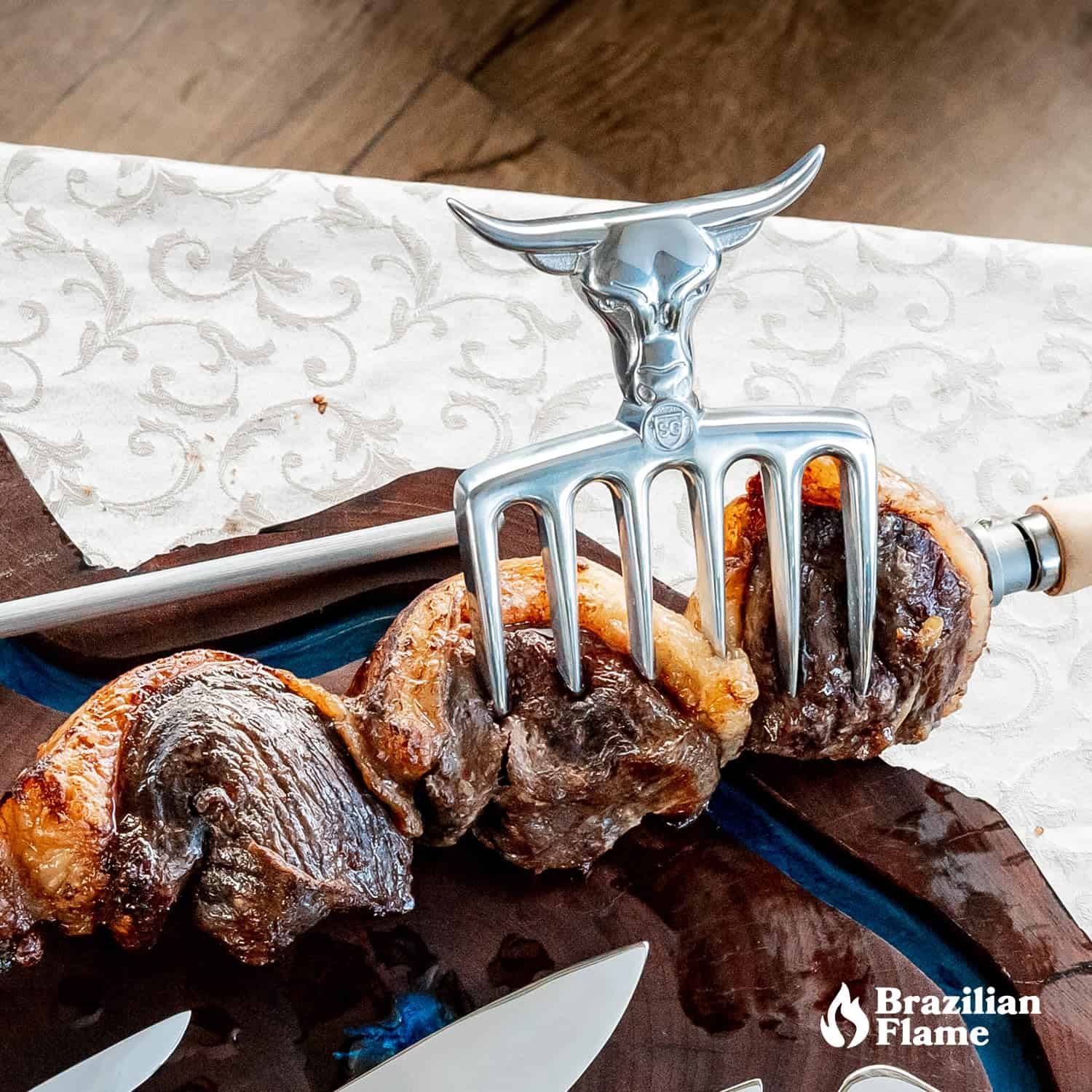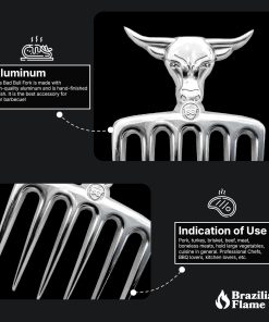 Este tenedor de aluminio de Brazilian Flame es ideal para desmenuzar carne sin ensuciar. Su fuerte y duradero diseño lo diferencia de otros productos en el mercado y le brinda un excelente agarre y apariencia estética. Perfecto para levantar, manipular, desmenuzar, jalar y tallar cualquier tipo de carne, incluido el pavo. Ya seas un chef profesional de barbacoa o alguien que disfruta cocinar en casa, un tenedor de calidad como este es esencial en tu cocina. Fácil de limpiar y listo para usar nuevamente en segundos.
