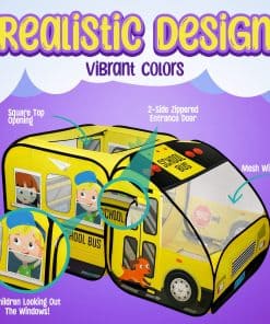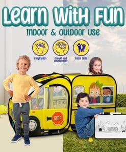 ¡Convierte la tienda de juego pop-up de autobús escolar Kiddzery para niños en una divertida adición a los elementos esenciales de recreación y aprendizaje de tu hijo! Con su genial característica de botón de sonido que imita un saludo de un conductor de autobús, esta tienda para niños en edad preescolar para uso en interiores y exteriores fomenta el juego de roles, promoviendo la creatividad y las habilidades sociales entre los primeros aprendices.