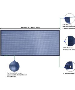 La cubierta de sombra Tentproinc para toldo de RV es la solución perfecta para protegerse del sol y disfrutar de su tiempo al aire libre con comodidad. Con su diseño innovador y materiales premium, esta cubierta de sombra ofrece una excelente protección contra los rayos UV, reduciendo hasta un 86% de la radiación solar. Al mismo tiempo, la malla de tela permite un flujo de aire adecuado y una vista despejada, proporcionando privacidad al mismo tiempo. Además, esta cubierta de sombra también es efectiva para reducir el viento y mantener la lluvia fuera de su área de estar en el patio. Fabricada con tela de malla de poliéster recubierta de vinilo de alta calidad y costuras dobles resistentes, esta cubierta de sombra es duradera y resistente a la intemperie. Su diseño fácil de instalar y desmontar le permite montarla en su toldo de RV en cuestión de minutos, brindándole un lugar fresco y agradable para relajarse. Con una amplia gama de colores disponibles y la opción de tamaños personalizados, la cubierta de sombra Tentproinc es la elección ideal para cualquier propietario de RV que desee disfrutar al máximo de su tiempo al aire libre.