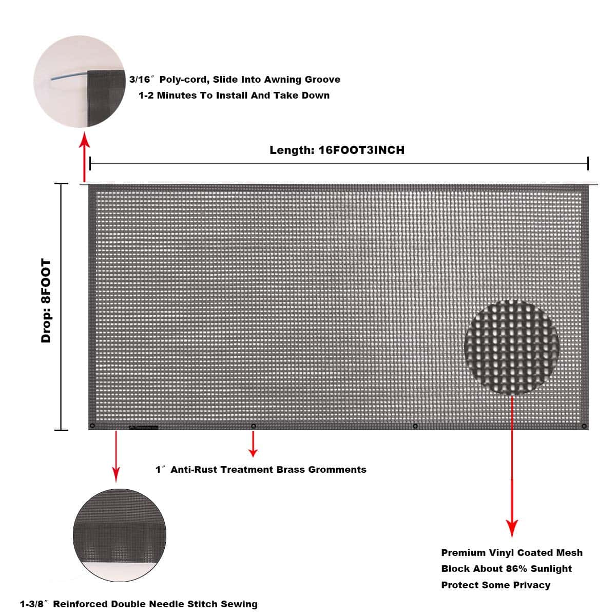 Tentproinc Pantalla de sombra para toldo RV 8' X 16' 3'' -