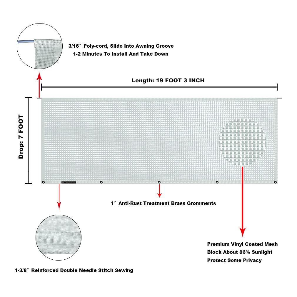 5. CÓMO PEDIRLO – La medida real del tejido terminado de 7’X19’3» es de 7 pies de caída por 19 pies 3 pulgadas de longitud, es compatible con el toldo de 20 pies (La medida del centro del brazo a el centro del brazo) y se ajusta a la mayoría de las marcas de toldos como Dometic (A&E), Carefree, Lippert, Fiamma, Solera, etc. No es compatible con el toldo Girard.