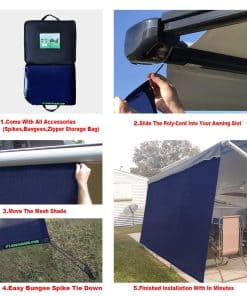 Tentproinc Toldo para RV 7′ X 19′ 3» – Malla de Sombra para Toldo de RV de 20′ – Toldo de Camping para Autocaravana Bloqueador de Rayos UV Malla Solar para Toldo de Caravana -3 Años de Garantía (Azul Marino) es la solución perfecta para protegerse del sol y disfrutar de la privacidad y comodidad en su RV. Con una alta eficiencia en bloqueo solar y una vista abierta, este toldo le permite mantener una temperatura agradable incluso en días calurosos. Su capacidad para reducir el viento y detener la lluvia lo convierte en un accesorio esencial para su patio de RV. Además, su fácil instalación y diseño de desmontaje lo hacen conveniente y práctico. Fabricado con materiales premium y con una garantía de 3 años, este toldo ha sido cuidadosamente diseñado para su satisfacción. ¡No espere más y adquiera su Tentproinc Toldo para RV en Azul Marino ahora mismo!