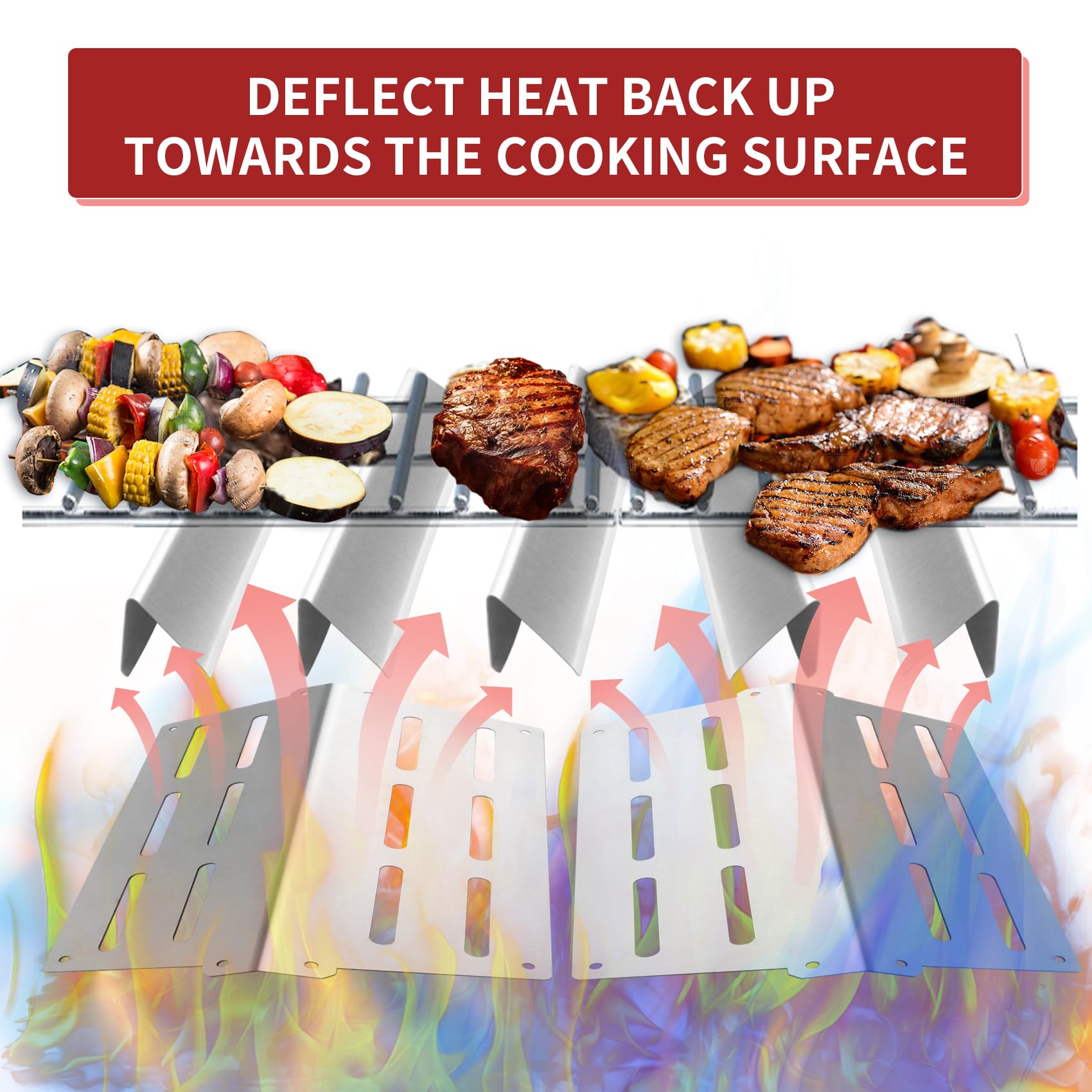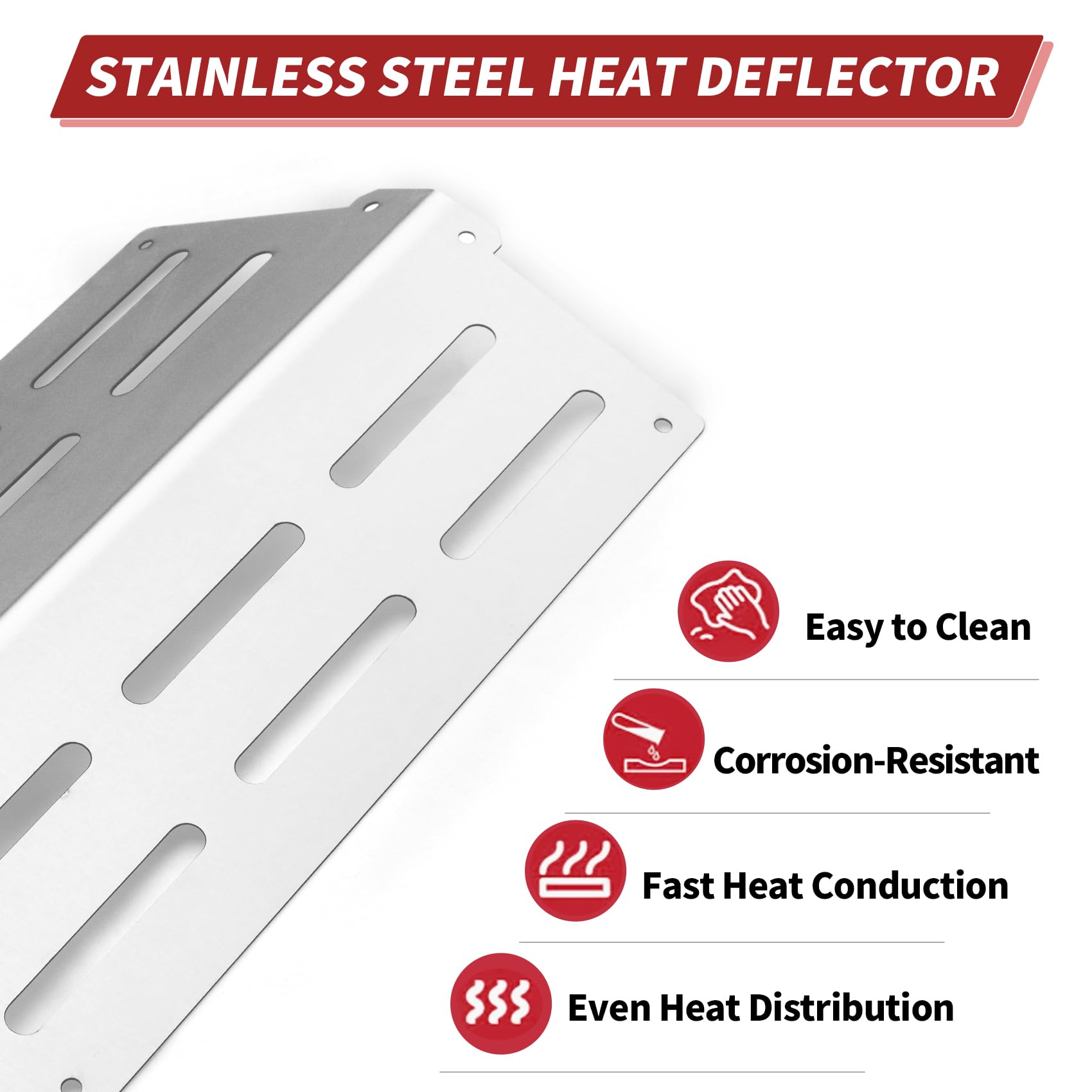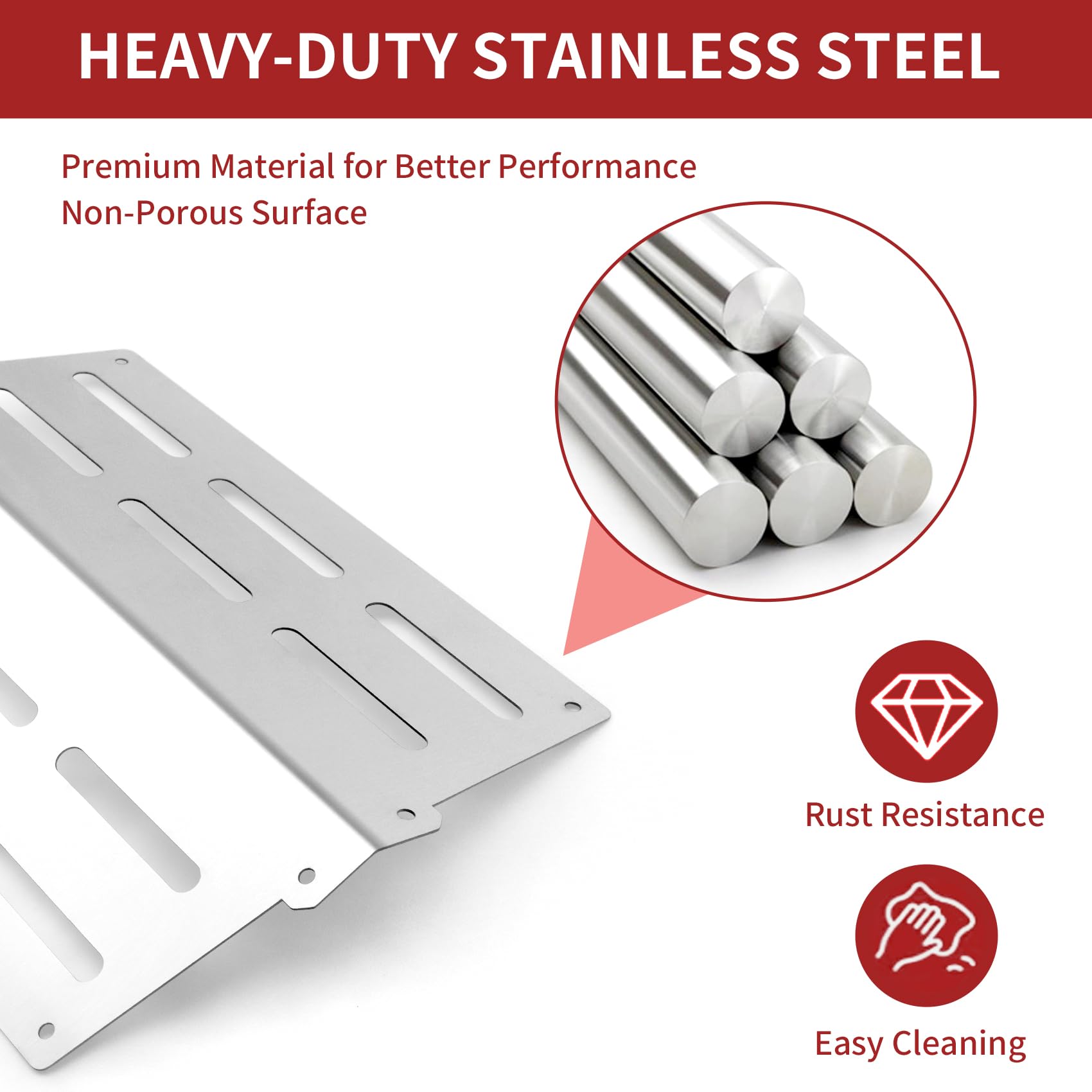 3. Material duradero: Los deflectores de calor de Weber Genesis están hechos de acero inoxidable resistente, que son duraderos con una fuerte resistencia a la oxidación, corrosión y al calor, más gruesos y pesados que otros deflectores de calor para parrillas, haciendo que su flame tamer en la parrilla sea innecesario de ser cambiado una y otra vez.