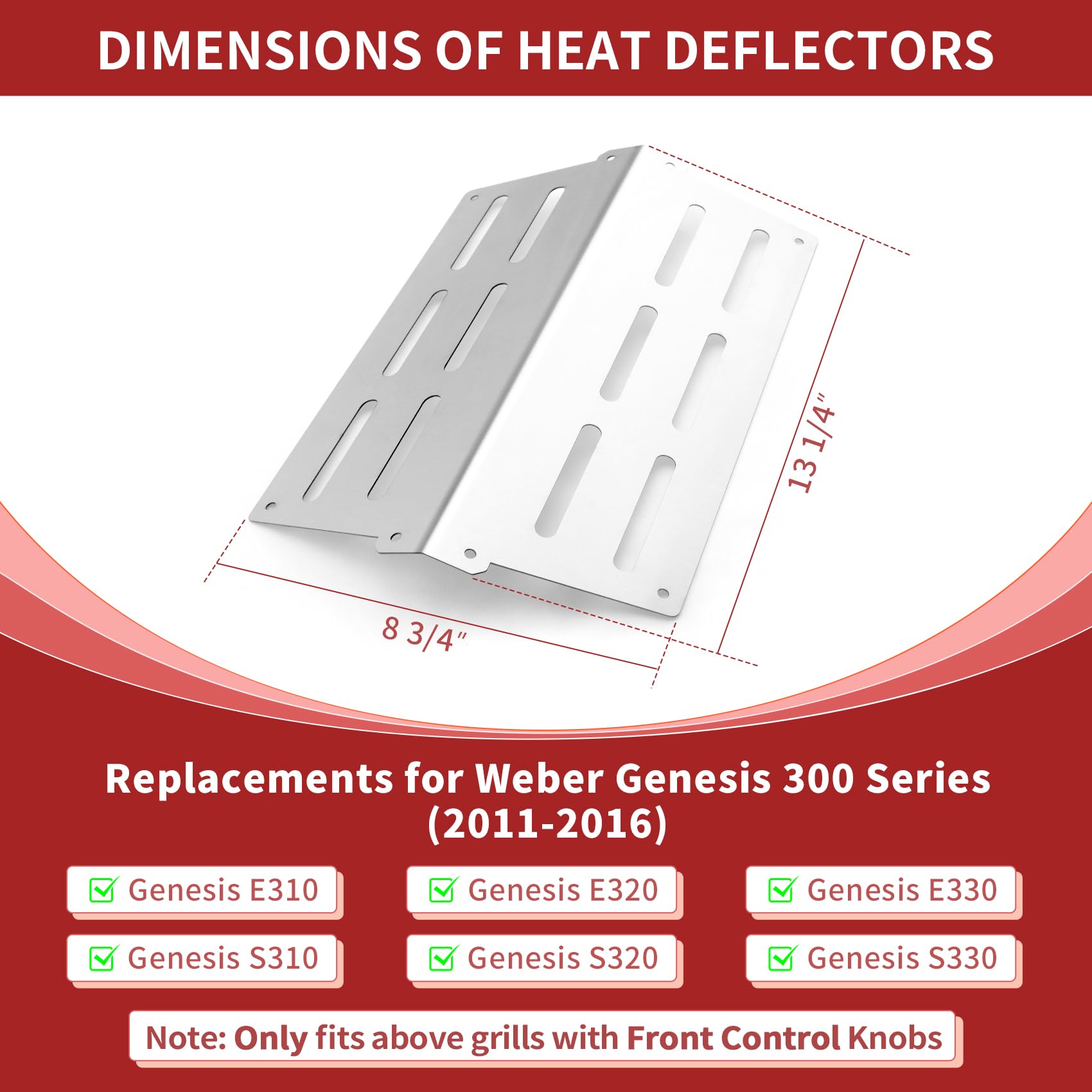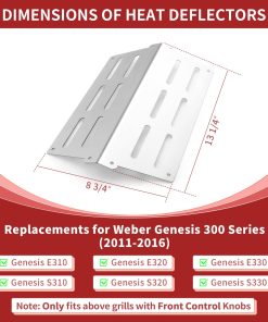 2. Dimensiones y paquete: Estas placas de calor para parrilla Weber Spirit miden 13 1/4 x 8 3/4, encajando perfectamente en sus parrillas de la serie Genesis 300. El paquete incluye 2 piezas de deflectores de calor, garantizando durabilidad y un rendimiento excepcional, haciéndola más eficiente y conveniente su experiencia de cocina.