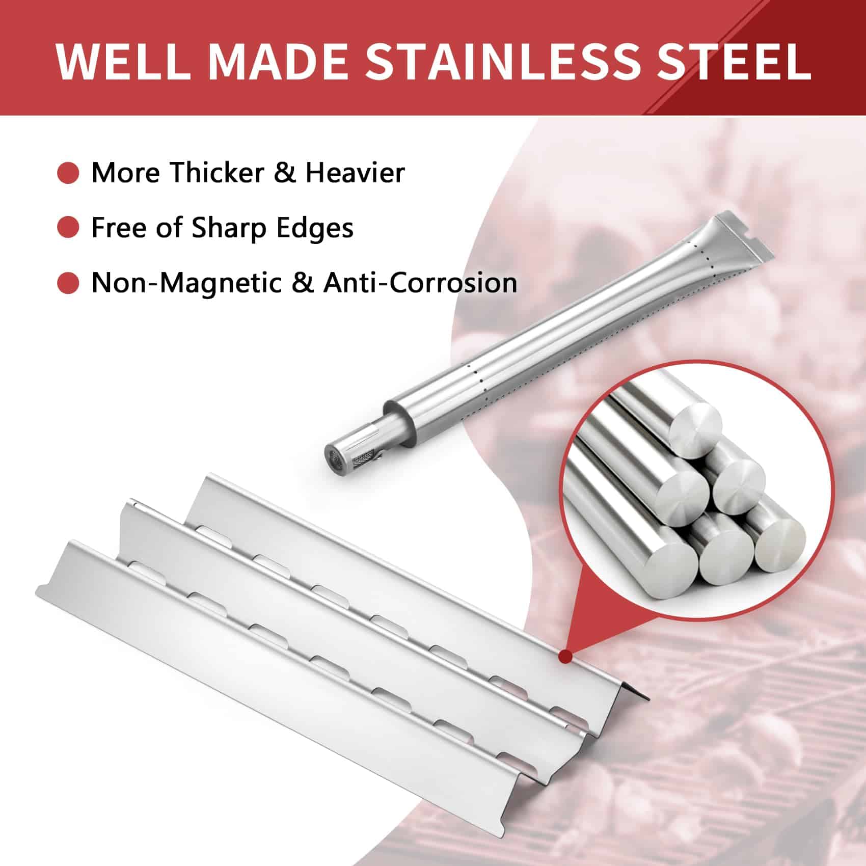 Kit de reemplazo para parrilla Broil King, compatible con modelos Sovereign y Signet Series Gas Grills (2006 en adelante), Signet 20, 70, 90, 320 (2006 en adelante), Monarch 300 Series Gas Grills (2014 en adelante), Monarch 320, Monarch 340, Monarch 390 y más. También compatible con modelos Broil King Monarch 320, 340, 390 Gas Grills. Fabricado en acero inoxidable sólido y resistente para una mejor distribución del calor en su parrilla nexgrill y una mayor durabilidad de sus placas térmicas y quemadores.