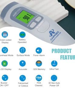Amplim Non-Contact Forehead Thermometer for Kids and Adults. AmpMed FSA HSA Approved No-Touch Baby Head Temporal Thermometer. Touchless Digital Fever Thermometer for Accurate Temperature Reading