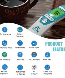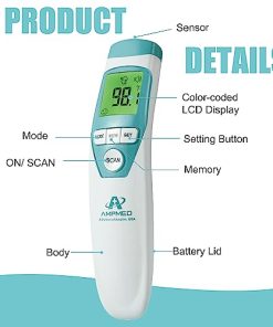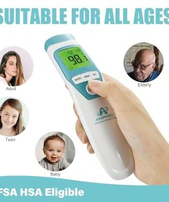 Mantenente informado sobre tu salud con tu termómetro sin contacto Amplim AmpMed personal. Nuestros dispositivos te brindan precisión en salud médica y de grado hospitalario para ayudarte a monitorear fiebre, gripe o resfriados. Para una lectura instantánea, simplemente apunta el termómetro a tu frente, espera aproximadamente 1 segundo para el pitido y tu temperatura corporal aparecerá en la pantalla digital. Pero nuestros termómetros sin contacto hacen más que solo dar lecturas térmicas. Cada termómetro viene con funciones especiales como ajustes duales en Celsius y Fahrenheit, una alarma de fiebre audible y memoria que te permite almacenar las temperaturas de hasta 60 lecturas pasadas. Como dispositivos de grado médico, nuestros termómetros son ideales para médicos, enfermeras, pediatras y otros profesionales de la salud que exigen el equipamiento más preciso y fiable, así como para trabajadores en hogares de ancianos, instalaciones de cuidado infantil, clínicas, guarderías, escuelas o restaurantes. Nuestros dispositivos están clínicamente probados y son algunos de los termómetros más higiénicos y precisos disponibles para el público. Las características integradas de ahorro de energía y la pantalla LCD a color de alta claridad significan que puedes depender del termómetro para darte una lectura clara y precisa en momentos de urgencia. Nuestros diseños modernos y elegantes no se parecen a tu típico termómetro de pistola. Nuestros elegantes dispositivos portátiles vienen en blanco y otros colores claros que te ayudan a mantener el dispositivo limpio y estéril. Nuestros termómetros pueden ser utilizados para un bebé, niño o adulto. Con un escaneo rápido en la frente, nuestros termómetros pueden ayudarte a mantenerte informado sobre tu salud y la salud de tu lugar de trabajo o hogar. ¡Este es un artículo imprescindible en el registro de bebés y en la canasta de regalos!