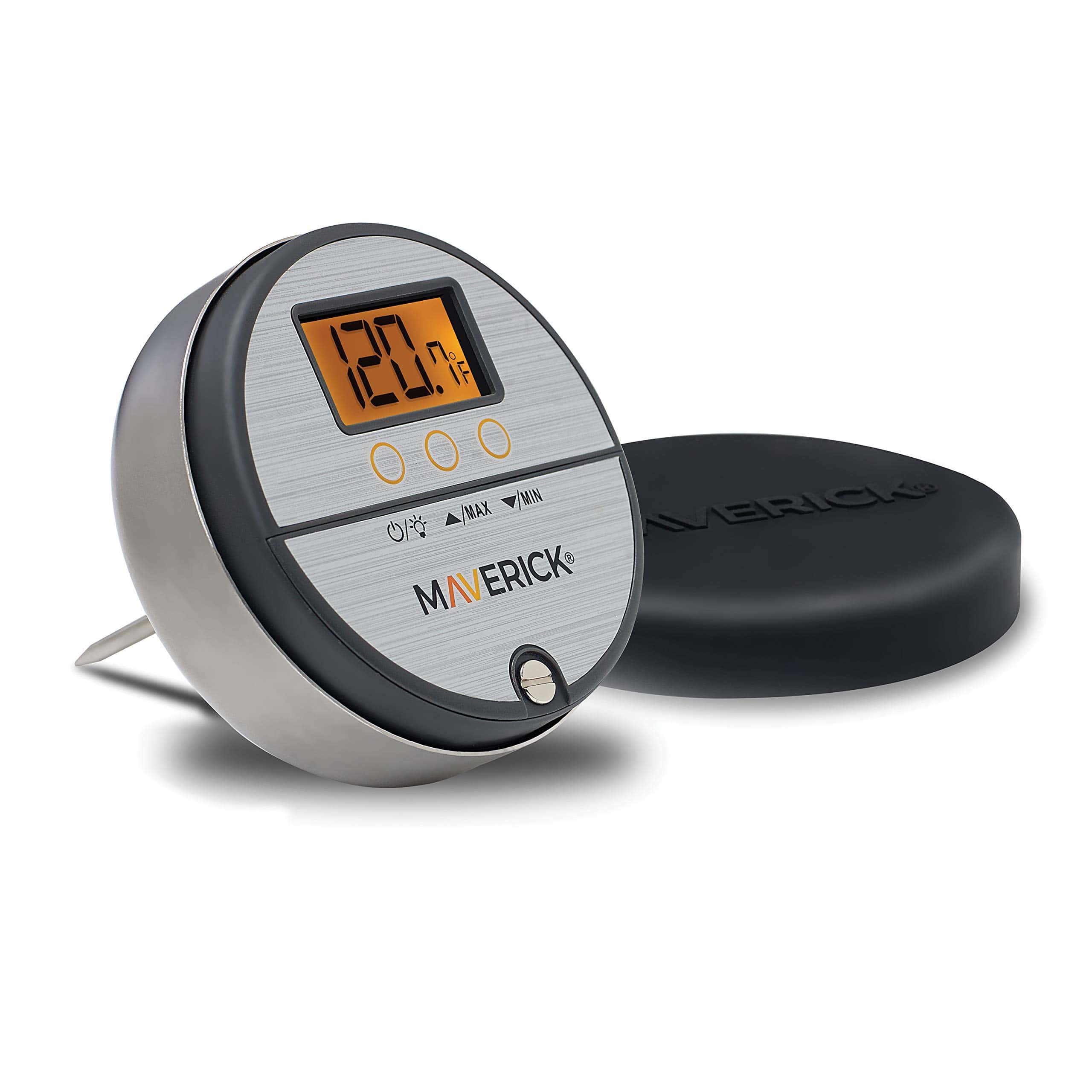Reemplace o actualice el termómetro de parrilla analógico incorporado con el moderno termómetro de parrilla termopar digital de la Serie Pro de Maverick. El diámetro del vástago de este modelo de termómetro DGT-310 es: .310 x 2 de longitud. El DGT-310 es para parrillas con un diámetro de agujero de termómetro analógico de .310 y superior. Es un vástago roscado y se mantiene en su lugar con una tuerca alada.