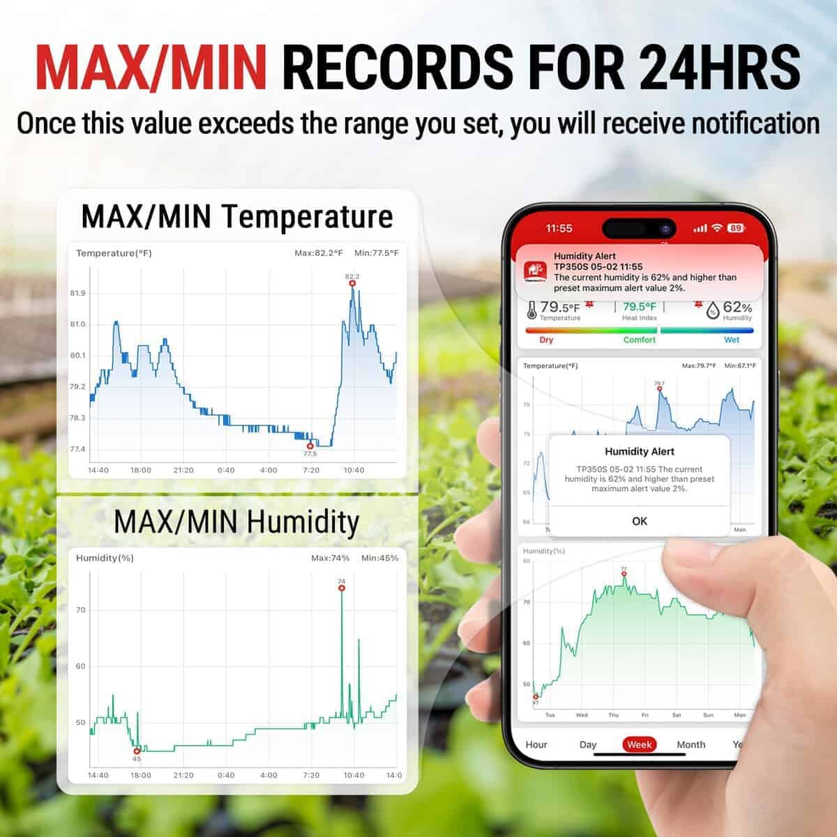Este termómetro higrómetro ThermoPro TP350 para la casa es ideal para aquellos que desean monitorear de cerca los cambios de temperatura y humedad en interiores. Con control de aplicación Bluetooth, puede supervisar fácilmente las condiciones ambientales desde una distancia de hasta 260 pies, sin obstrucciones. La aplicación ThermoPro protege su privacidad al no requerir registro de usuario. Con una función de almacenamiento y exportación de datos de 2 años, este sensor de temperatura y humedad le permite revisar el historial para obtener información valiosa y realizar ajustes en consecuencia. Diseñado con un sensor NTC de temperatura y humedad avanzado, este termómetro de habitación con Bluetooth ofrece una alta precisión y sensibilidad, con una actualización rápida de 10 segundos. La pantalla retroiluminada garantiza que las lecturas sean claramente visibles incluso en condiciones de poca luz, mientras que el indicador de confort de icono facial le informa de cualquier cambio ambiental con solo una rápida mirada. Además, su diseño versátil lo hace adecuado para monitorear temperaturas en dormitorios, habitaciones de bebés, salas de instrumentos musicales, salas de puros, y mucho más.