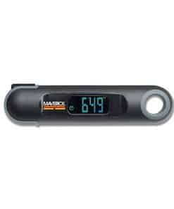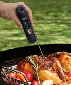 ¡Una actualización tecnológicamente carnosa para su destreza culinaria! Realice un seguimiento preciso de la temperatura y el tiempo de cocción de la carne, pollo, carne de res, pavo y todas sus barbacoas favoritas con el NUEVO Termómetro de Lectura Instantánea PT-75-SD de Maverick. Nuestro fácil medidor de temperatura inalámbrico es un práctico termómetro y temporizador todo en uno, que lo ayuda a supervisar cada comida deliciosa con su sensor termopar tipo-K súper rápido. Disfrute de la precisión del maestro de parrillas con la operación simple de un solo botón, sonda plegable, diseño portátil y temporizador de cuenta regresiva integrado de forma conveniente. Una vez que revise la temperatura de los alimentos en la amplia pantalla LCD giratoria, simplemente cierre la sonda y nuestra tecnología de última generación inicia automáticamente el reloj, asegurando que cada platillo se cocine a la perfección. También puede cambiar fácilmente entre C y F y verificar los niveles de cocción en cualquier ambiente, llevando sus habilidades de ahumador desde la estufa hasta el horno, pasando por la parrilla y más allá. ¿Listo para probar un sabroso, suculento filete ahumado exactamente a su gusto? Ahorre tiempo y parrille de manera más inteligente agregando el PT-75-SD de Maverick a su carrito hoy! Especificaciones y Detalles – Rango de temperatura: -45 F a 450 F – Temporizador de cuenta regresiva: hasta 99 minutos – LCD: 38 mm x 17 mm – Sonda: 6″ – Sensor: 1″ – Apagado automático – Resistente al agua certificado IP44 – Alimentación: 2 pilas AAA – Carga completa: 10 horas de uso – Garantía limitada de 1 año Cómo Disfrutar – Inserte la sonda de acero inoxidable en el centro de la carne o aves de corral – Vea cómo el temporizador comienza automáticamente para garantizar el punto de cocción ideal – Aprecie la operación sencilla de un solo botón y la pantalla LCD invertida – Disfrute de una limpieza sin estrés y un millón de comidas deliciosas!