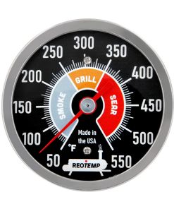 El termómetro para barbacoa Reotemp SP3025B BBQ Smoker Pro es un termómetro preciso y de alta calidad diseñado para mejorar tu BBQ o ahumador a su máximo potencial. Reemplaza tu termómetro OEM con el Smoker Pro para un dial de 3″ más fácil de leer. El Smoker Pro cuenta con una construcción de calidad con acero inoxidable 304 y una lente de vidrio. El dial fácil de leer tiene 3 zonas: ahumado/parrilla/asado. El termómetro se instala fácilmente en un agujero de 7/8″ con la contratuerca incluida. Respaldamos nuestro producto con una garantía limitada de 1 año.