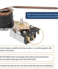 Termostato de estufa y horno genuino de Robertshaw para hornos con funciones de horneado y asado. Modelo: KKB-9-48. Ensamblado en México. Aprobado por CSA. Utilizado en cualquier sistema de ignición no DSI. Corriente y Voltaje: 22A 120-250 VAC. Temperatura máxima: 606°F. Bulbo de cobre de 1/4» x 6-3/4» con capilar de 48». No doblar demasiado ni cortar el capilar del bulbo, hay líquido/aceite en su interior. El termostato del horno mantiene las temperaturas correctas en las operaciones de horneado y asado. Nombres y números de OEM utilizados solo como referencia. Compatible con modelos Viking: EVGIC365, EVGIC485, SVGIC305DSI, VGIC245, VGIC245G, EVGIC305, VGIC245K, VGIC245Q, VGIC305, VGIC305DSI, VGIC307, VGIC307DSI, VGIC365, VGIC367, VGIC485, VGIC487. Más modelos Viking compatibles: VGIS300, VGIS360, VGIS480, VGRC365, VGRC485, VGRC605, Todos los aparatos VGR/VCM/VRT, VGSC300, VGSC305, VGSO165, VGSS300, VGSS360, VGSS480.