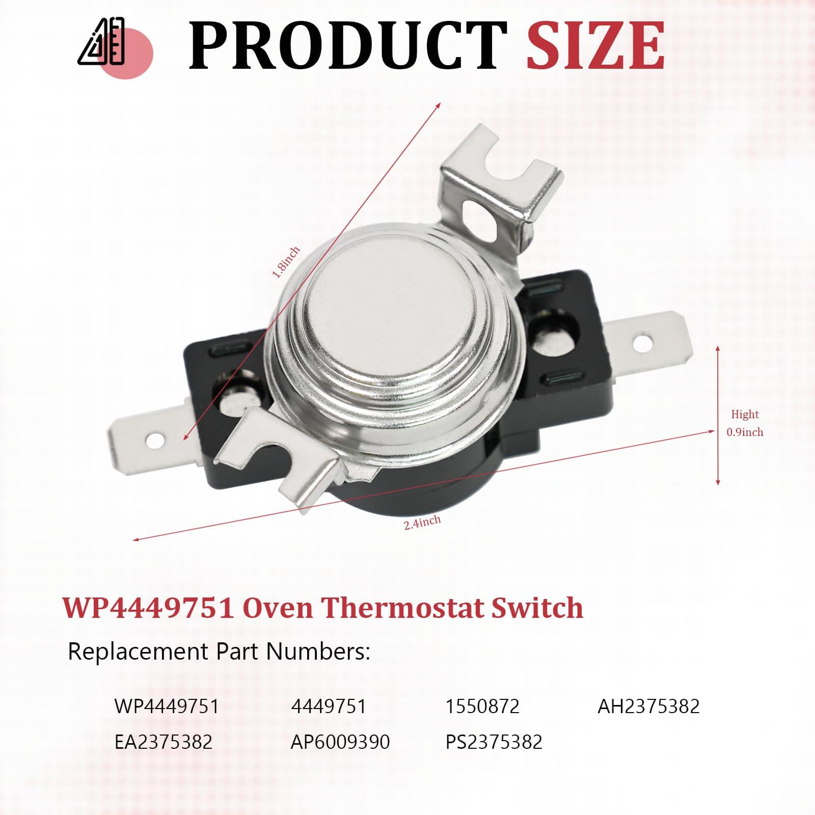 1. Número de pieza de repuesto del termostato de límite de horno: WP4449751, 4449751, 1550872, AH2375382, EA2375382, AP6009390, PS2375382, etc.