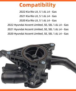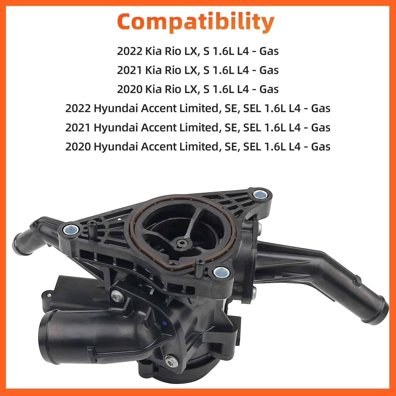 Termostato de Motor Compatible con 2020 2021 2022 Kia Rio LX, S Hyundai Accent Limited, SE, SEL 1.6L L4 – Gasolina. Nuestros productos están hechos de materiales de alta calidad a través de tecnología de producción profesional. Los procesos de fabricación de alta calidad y los materiales de fabricación de alta calidad garantizan un rendimiento estable del producto, mantienen una alta eficiencia en diversas condiciones de trabajo y tienen una larga vida útil. Los productos plug and play son fáciles de instalar sin la necesidad de herramientas o técnicas de instalación complejas. El paquete incluye 1x Conjunto de termostato (como se muestra en las imágenes). Ubicación en el vehículo: Delantero. Tipo de combustible: Gasolina.