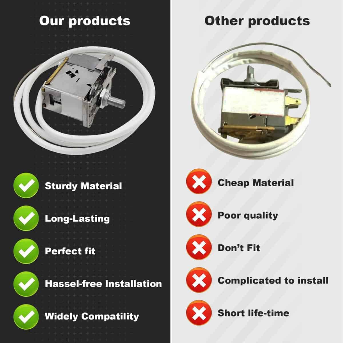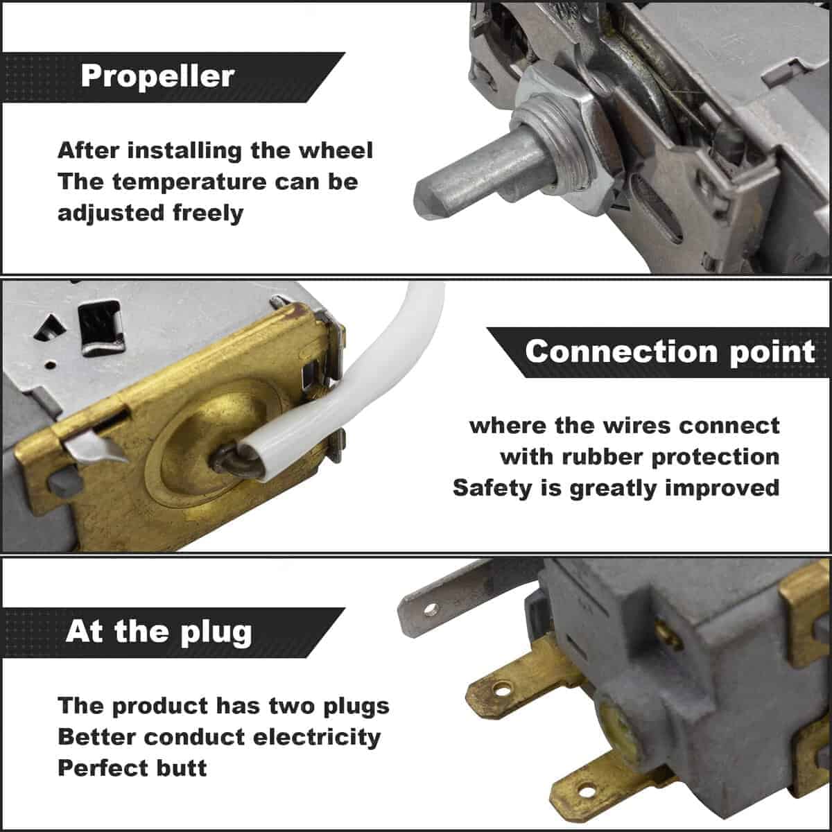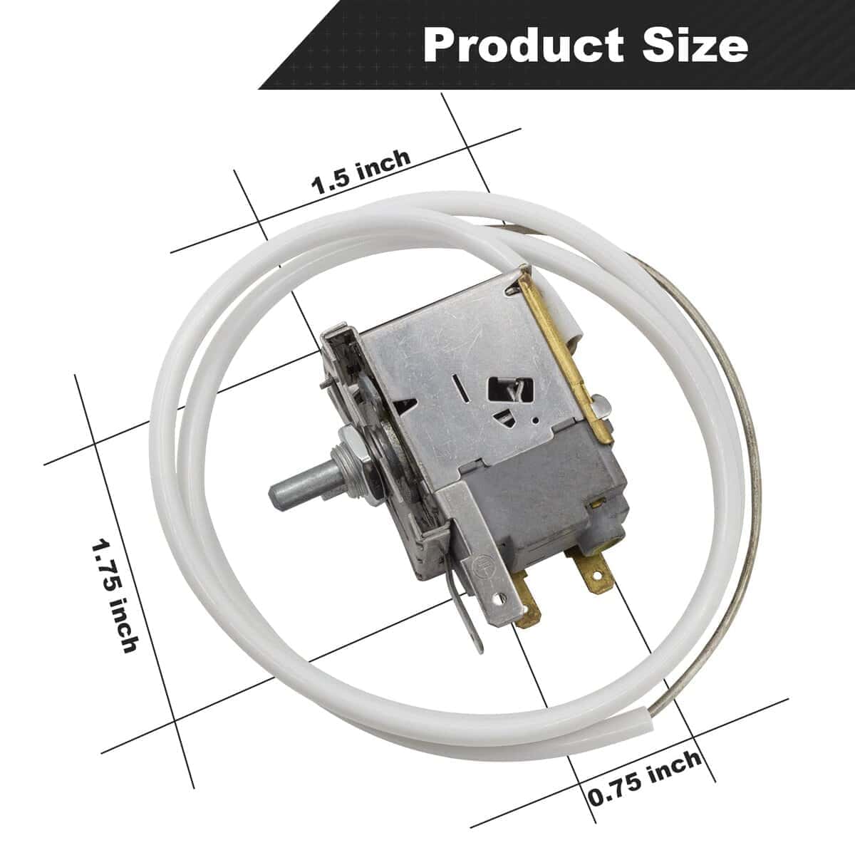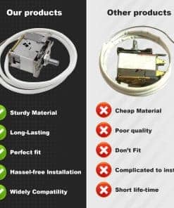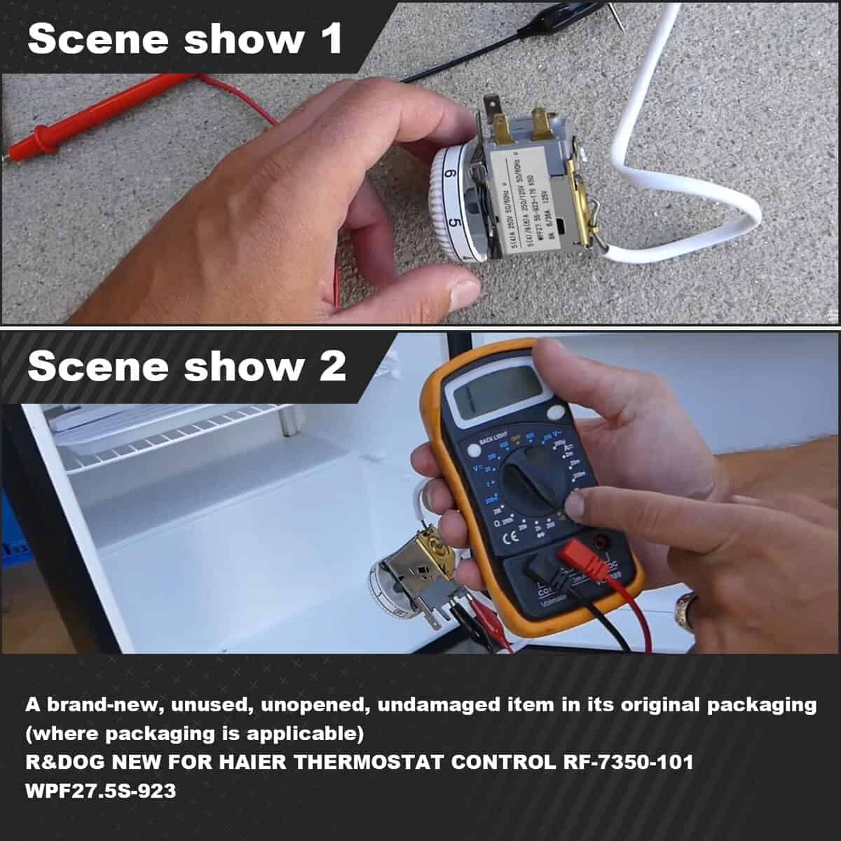Producto Descripción Compatible con Termostato Haier RF-7350-101 WPF27.5S-923 para Refrigerador Doméstico Refrigerador de RV, el termostato del refrigerador garantiza una regulación precisa de la temperatura para mantener sus alimentos frescos y sus bebidas frías. Fácil de ensamblar Reemplazar un termostato de refrigerador solo toma de 10 a 30 minutos y es fácil de hacer, todo lo que necesita es un destornillador Phillips y de hoja plana, un driver de tuerca y alicates de punta afilada. ¡Le permite reemplazar un termostato viejo o defectuoso con poco esfuerzo. Embalaje del Producto Artículos nuevos, sin usar, sin abrir, sin daños en su embalaje original (cuando corresponda). Servicio de mantenimiento de un año, como problemas de producto, ¡no dude en contactarnos para que podamos ayudarlo! Termostato de Congelador Hecho de materiales de calidad y probado por el fabricante, es el mejor reemplazo para el termostato de mini nevera Haier. Operación eficiente en energía Termostato de Refrigerador diseñado para una amplia gama de refrigeradores, congeladores y mini neveras, este termostato es compatible con termostatos Haier, que ayudan a ahorrar consumo de energía al mantener una temperatura óptima.