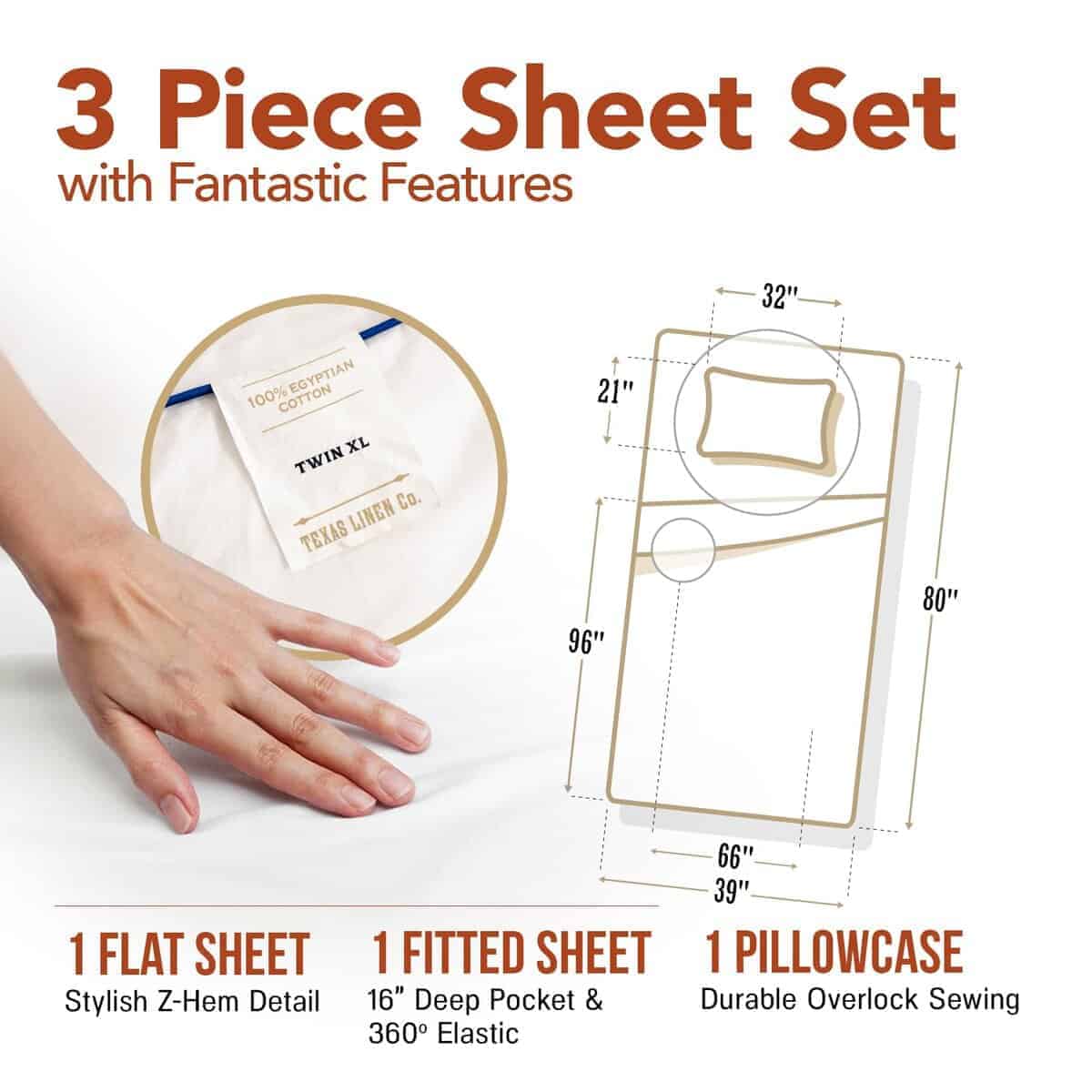 Nuestro juego de sábanas de algodón damasco tiene el mejor ajuste, gracias al amplio elástico y bolsillos extra profundos que se adaptan a cualquier colchón ajustable. Las sábanas a rayas no se caen inesperadamente por la noche. Las etiquetas de la cabecera/piecera te indican dónde van los lados. El juego de sábanas damasco twin xl de 3 piezas incluye: 1 sábana plana o superior (66» de ancho x 96» de largo), 1 sábana ajustable o inferior (39 de ancho x 80 de largo + 16 de bolsillo profundo), y 1 funda de almohada de tamaño estándar/queen (21 de ancho x 32 de largo). Hemos mercerizado nuestras sábanas de damasco de algodón de alta calidad y primera calidad. Esto significa que nuestras sábanas tienen un brillo y lustre aumentados, mejor calidad de tinte y mayor durabilidad que otras sábanas damasco de algodón en el mercado. Nuestras sábanas a rayas damasco son completamente lavables a máquina y resistentes a la formación de bolas, al encogimiento y a la decoloración. Están certificados como ESTÁNDAR 100 por OEKO-TEX por no tener productos químicos agresivos en nuestras sábanas a rayas de damasco que podrían afectar la piel sensible de adultos y niños. Hechas al 100% de algodón natural, somos una mejor alternativa a la microfibra. Lo mejor es que la sensación de nuestras lujosas sábanas de damasco es similar a la de una sábana de algodón egipcio, por eso y por qué exactamente a ti también te encantarán. Si no te gustan nuestras sábanas de algodón damasco, puedes cambiarlas/devolverlas en nuestra tienda dentro de los 30 días.