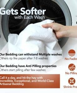Nuestro juego de sábanas damasco full cuenta con un ajuste perfecto gracias al elástico ancho y los bolsillos extra profundos que se adaptan a cualquier colchón ajustable. Las etiquetas en la cabecera / pie de la cama te indican dónde van los lados. El juego de sábanas full damasco de 4 piezas incluye: 1 sábana plana o superior (81″ W x 96″ L), 1 sábana ajustable o inferior (54 W x 75 L + 16 bolsillo profundo) y 2 fundas de almohada estándar / queen (21 W x 32 L).