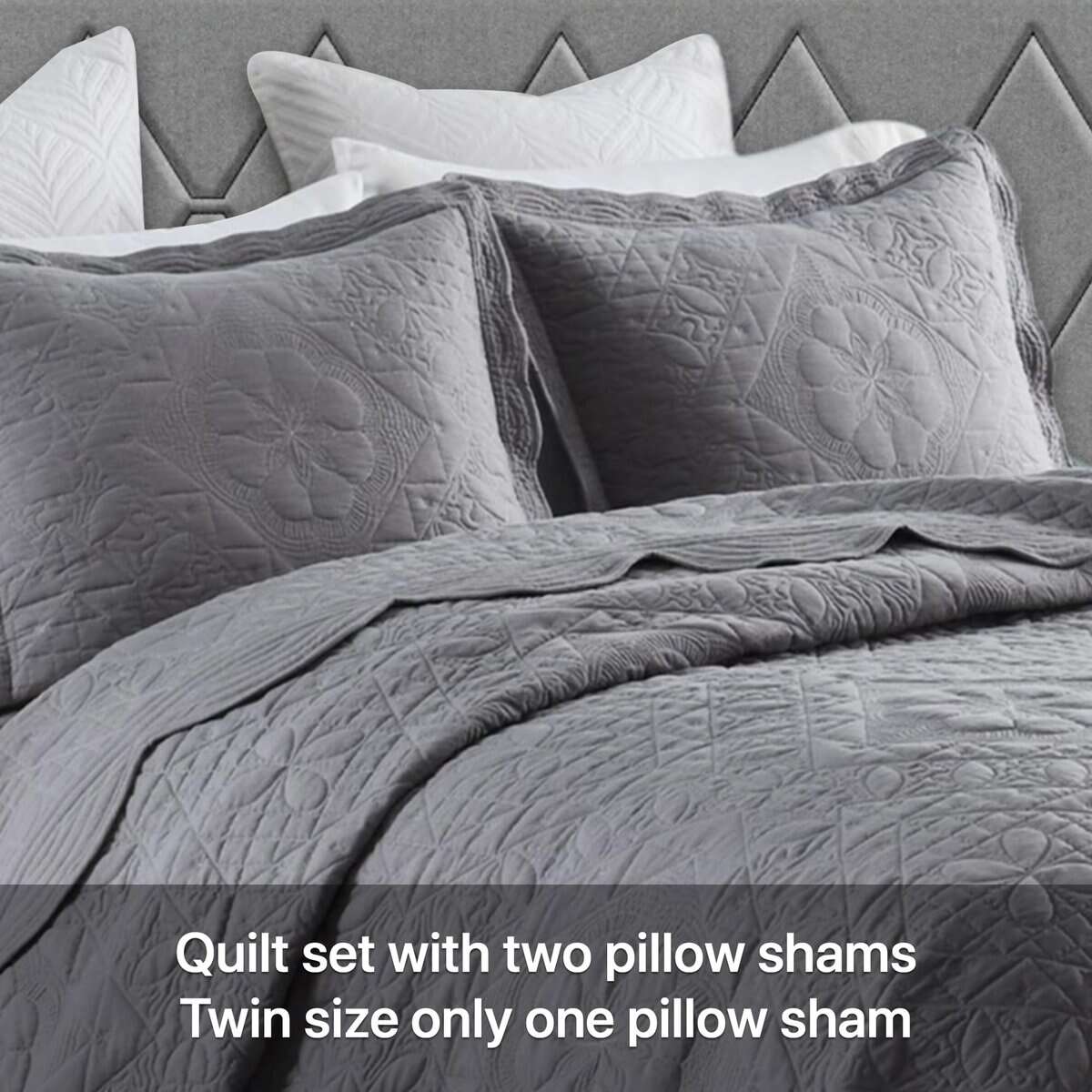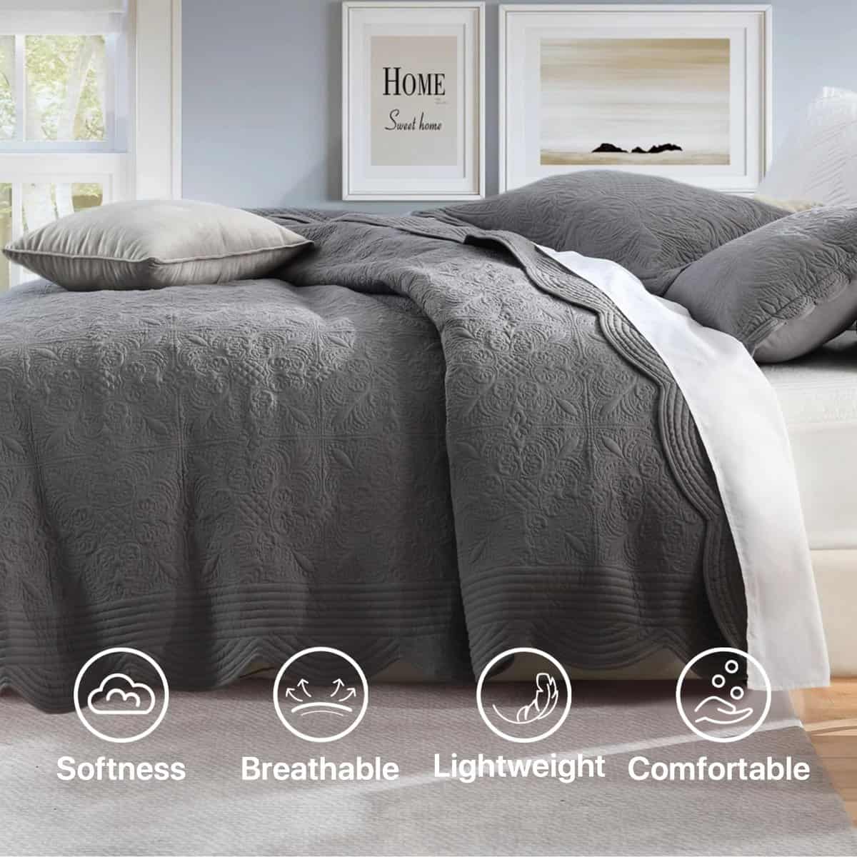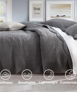 1. Materiales Premium: Este edredón está relleno con 70% algodón premium y 30% poliéster, equilibrando suavidad y soporte. La capa exterior utiliza tejido cepillado lavado, conocido por sus arrugas naturales y su textura suave y aterciopelada. El proceso de lavado suaviza aún más la tela, haciéndola acogedora y amigable con la piel, al mismo tiempo que agrega un sutil toque vintage. 2. Juego Incluye: Este juego de ropa de cama viene con un edredón tamaño king (104×90 pulgadas) y dos fundas de almohada a juego (20×30 pulgadas). Es perfecto para el Día de la Madre, el Día de la Mujer, Navidad, o cualquier ocasión especial. 3. Exquisita artesanía: Cada edredón está meticulosamente diseñado y elaborado, con patrones de acolchado únicos que no solo mejoran su atractivo estético, sino que también aumentan su durabilidad, haciéndolo perfecto para el uso diario. Su tela antiestática y transpirable proporciona la máxima comodidad sin ruido crujiente. 4. Perfecto para todas las estaciones: Este versátil juego de edredón ofrece el equilibrio ideal entre calidez y transpirabilidad, lo que lo hace adecuado para su uso durante todo el año. Ya sea en noches frías de invierno o días cálidos de verano, este juego de ropa de cama te mantiene cómodo en cada temporada. 5. Cuidado fácil: Lavar a máquina, secar a fuego lento o secar al sol. No usar lejía con cloro ni aditivos. Dado que el juego de edredón fruncido está empaquetado en una bolsa al vacío, se recomienda encarecidamente colocarlo en la secadora a fuego lento para ayudar a quitar las arrugas o colocarlo al sol y golpearlo suavemente para que quede esponjoso. El edredón ha sido comprimido debido al envasado al vacío, lo que puede resultar en una discrepancia de tamaño de 1-2 pulgadas.