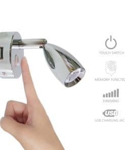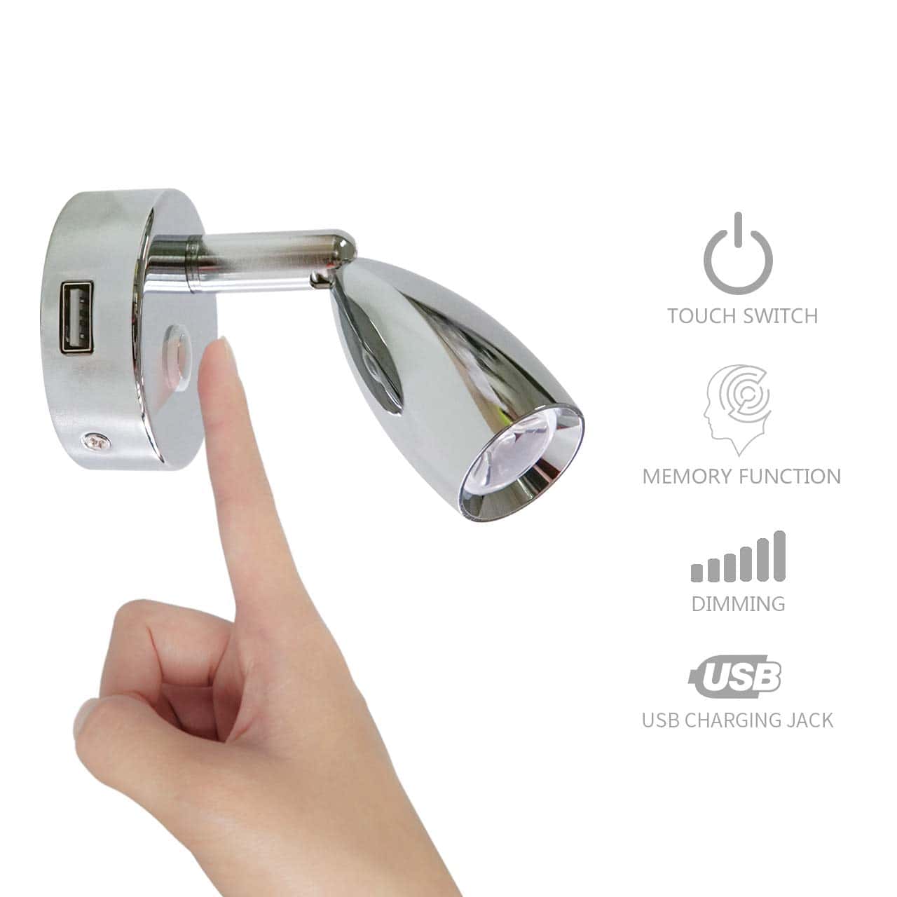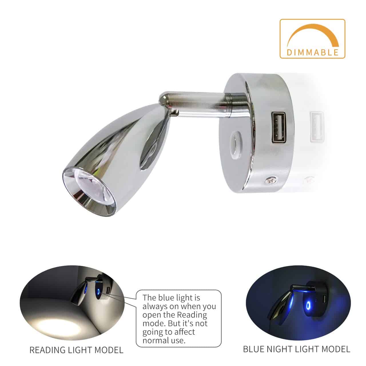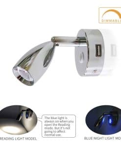 Práctico interruptor táctil, modo de iluminación dual luz ambiental azul y luz de lectura.
