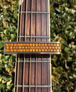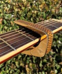 Presentamos los capos de la Serie Premium Thalia Eleva el Rendimiento de tu Guitarra. Experimenta un viaje de ejecución elevado con los capos de la Serie Exótica Thalia, presentados ahora en tres exquisitos acabados: Cromo, Cromo Negro y Oro de 24k. Estos capos trascienden la funcionalidad, encarnando la excelencia artística con sus cautivadoras Incrustaciones de Concha y Madera Exótica, que le otorgan a tu instrumento un aire de sofisticación. Con su mecanismo de acción inversa, estos capos garantizan una instalación sin esfuerzo y una navegación impecable a lo largo de diapasones de instrumentos con trastes. Independientemente de si eres un músico competente o un principiante, nuestros capos simplifican los ajustes de trastes. Sin embargo, la verdadera singularidad de estos capos radica en nuestras innovadoras Almohadillas Universales OctaveTouch. Diseñadas para emular la flexibilidad natural de los dedos humanos, estas almohadillas garantizan una presión e entonación óptimas para tus cuerdas. El paquete incluye dos versiones de estas almohadillas de trastes que atienden a tus necesidades: La variante de Tensión Estándar preinstalada, diseñada para Guitarras de 6 Cuerdas, asegura una afinación precisa y una resonancia óptima. Para Guitarras de 12 Cuerdas, Mandolinas y Guitarras de mástil delgado, la versión de Alta Tensión destaca. Obtén una afinación impecable y un sonido sin igual en un espectro de instrumentos. Y ahora, para coronarlo todo, la Serie Premium cuenta con grabados metálicos intrincados en ambos lados del capo, añadiendo una capa extra de distinción a tu viaje musical.