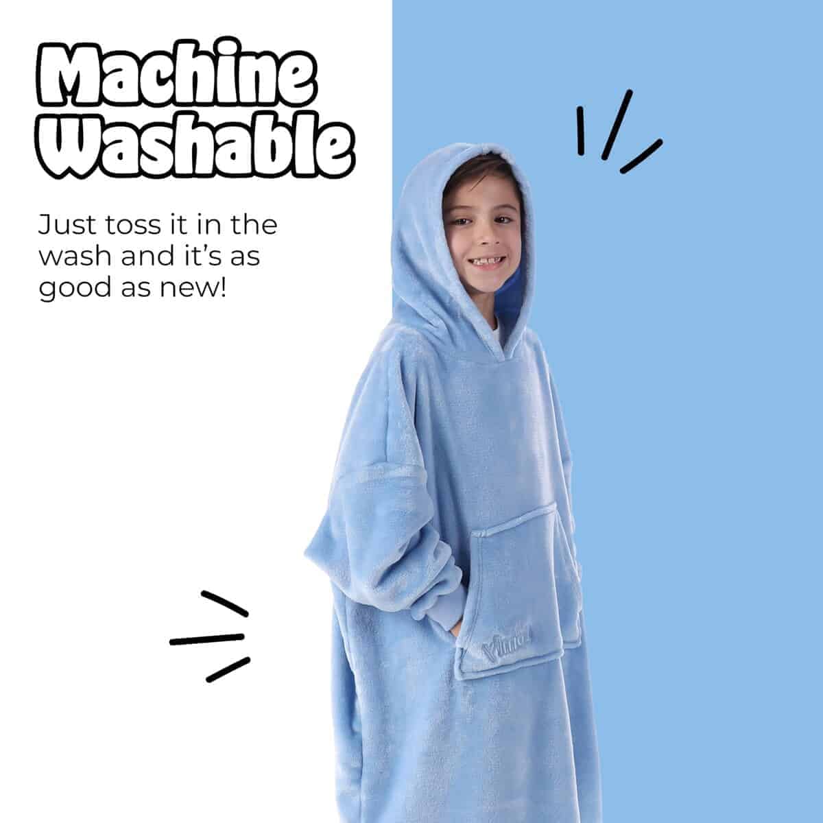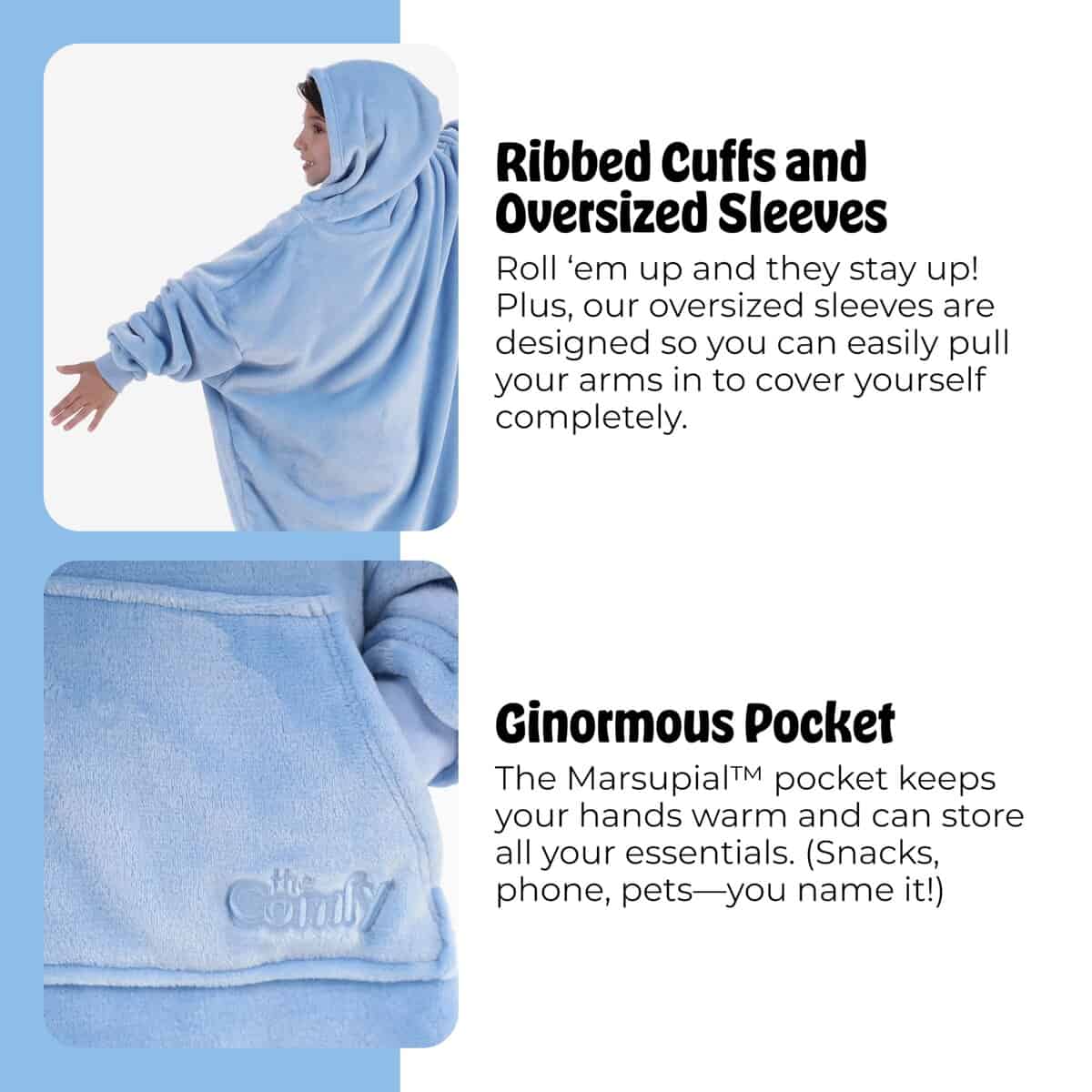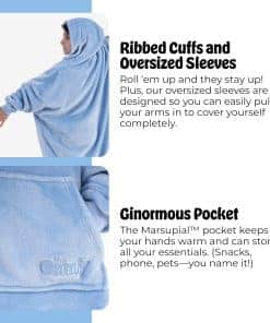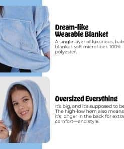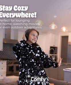 4. Todo es extragrande: ¡Es gigante, y así es como debe ser! Comenzamos con una talla 5XL para hombre y hemos ido aún más grandes desde entonces. Con una capucha enorme, bolsillo marsupialTM, mangas extragrandes y un dobladillo alto-bajo, ¡The Comfy es como ser abrazado por una nube! ¡Ahora puedes llevar tu manta a cualquier lugar! Ya sea una siesta por la tarde, trabajar desde casa, una caminata con el perro o acampar en verano, esta acogedora manta portátil de felpa proporciona una cálida transpirabilidad perfecta para uso en interiores o exteriores.