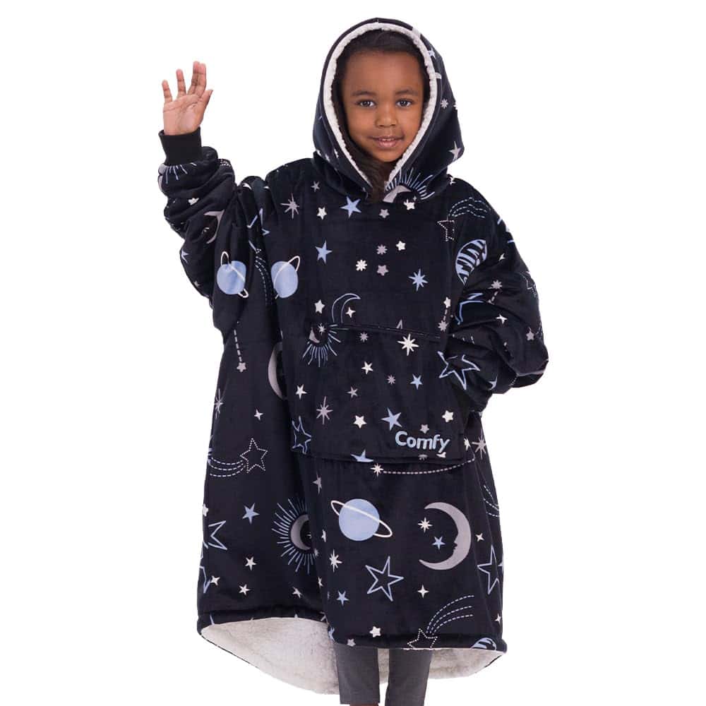4. Todo Sobre Dimensiones Exageradas: ¡Es gigante, y así debe ser! ¡Con una capucha grande y mullida, bolsillo canguro, mangas extra grandes y un dobladillo alto-bajo, The Comfy es como ser abrazado por una nube! ¡Llévalo a la próxima barbacoa al aire libre, viaje de campamento, playa, autocine, pijamada o úsalo en la escuela! ¡Ahora puedes llevar tu manta a cualquier lugar!