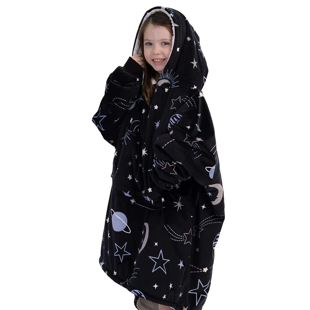 2. AMADA POR TODOS LOS NIÑOS: ¡A tus pequeños les encantará ponerse esta acogedora manta para vestir! ¡Es perfecta para mantenerse cálido en casa, viendo la televisión, jugando videojuegos, en eventos deportivos, acampando, durmiendo, leyendo y mucho más! El mejor para niños de 10 años o menos.