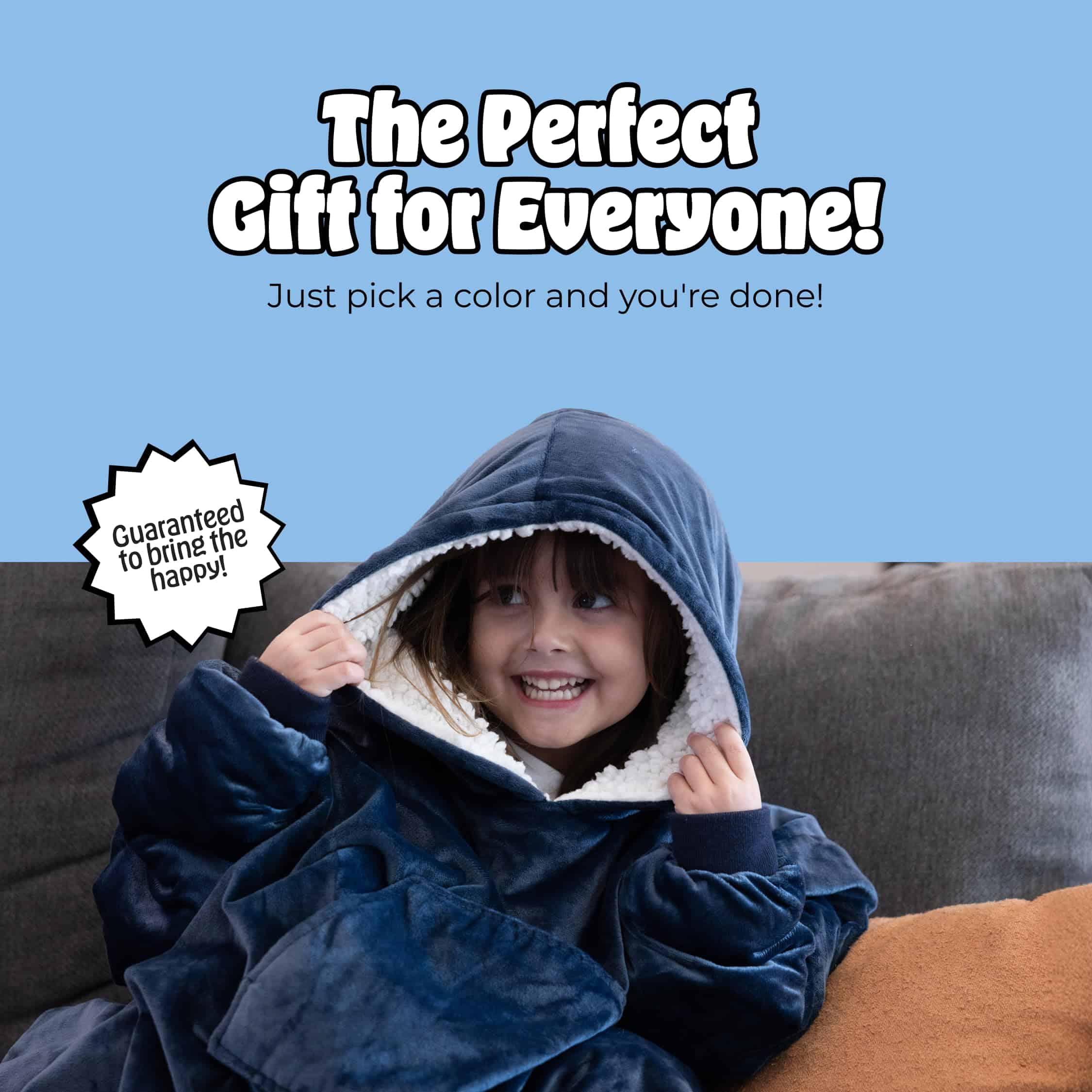 4. Todo es de tamaño grande: ¡Con una capucha enorme de felpa, bolsillo marsupialTM, mangas extragrandes y un dobladillo alto-bajo, The Comfy es como ser abrazado por una nube! ¡Llévalo a la próxima barbacoa al aire libre, viaje de campamento, playa, autocine, pijamada o úsalo en la escuela! ¡Ahora puedes llevar tu manta a cualquier lugar!