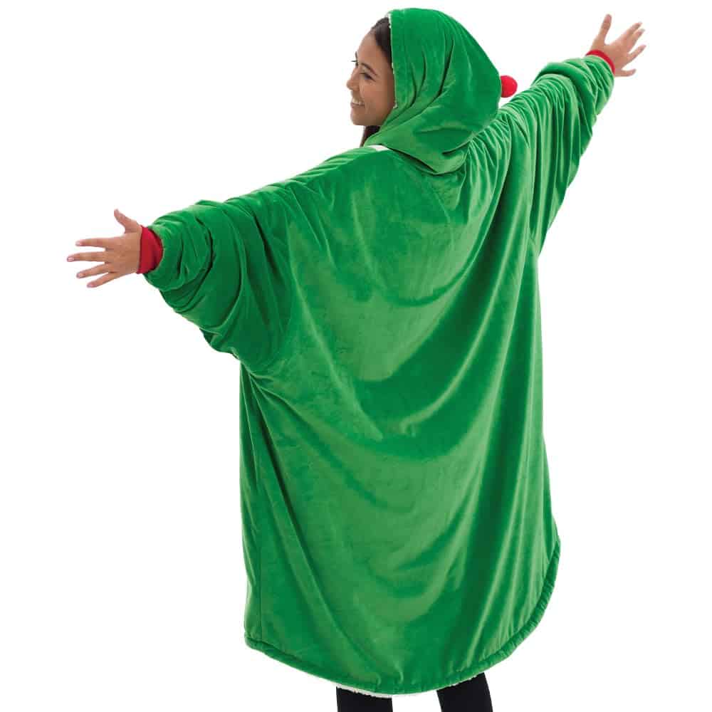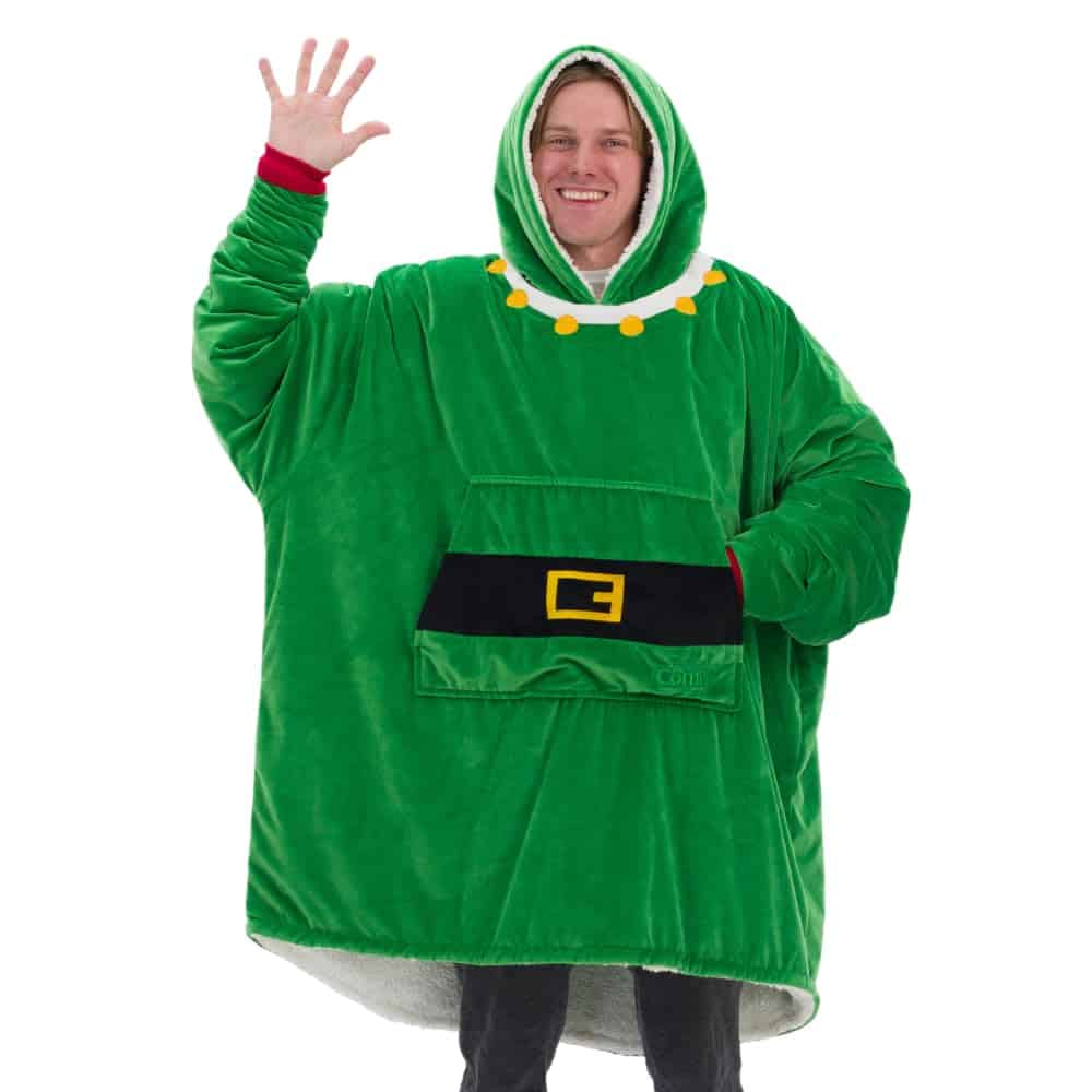 4. Todo es exageradamente grande: ¡Es gigante, y así debe ser! Empezamos con un 5XL de hombre y desde entonces solo hemos ido a más. ¡Con una gran capucha peluda, bolsillo marsupialTM, mangas extragrandes y un dobladillo alto-bajo, la The Comfy es como ser abrazado por una nube! Mete tus piernas, sube la capucha o camina con libertad llevando la calidez de tu manta a donde quieras. ¡Ahora realmente puedes llevar tu manta puesta en cualquier lugar!